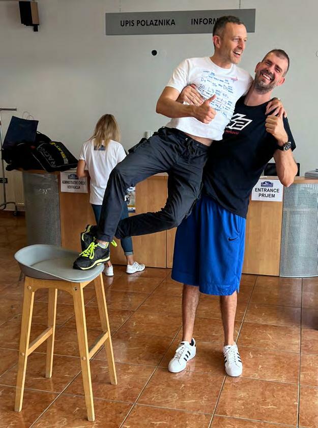 Staro poznanstvo: Jura Šebalj, poznati hrvatski as, uz pomoć stolice je dohvatio 207 cm visokog Borkovića kako bi se pozdravili