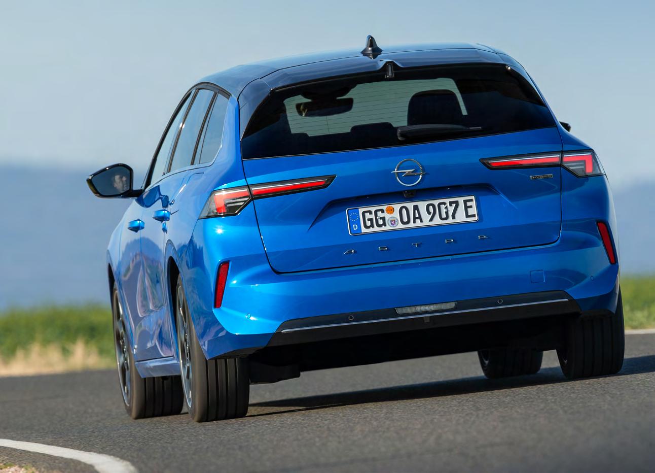 plug-in hibrid od 180 KS. Mi smo za prvu vožnju odabrali ovaj poslednji. Reč je o pogonskom sistemu koji objedinjuje 1.6 benzinski turbomotor od 150 KS i elektromotor od 110 KS, koji snagu prenosi na prednje točkove preko komfornog automatskog osmostepenog menjača. Odmah se da primetiti da je „astra”, nevezano od toga da li se kreće na benzin ili na struju, u vožnji veoma tiha i dobro izolovana. A i prilično brza – u sport režimu do 100 km/h ubrzava za 7,6 sekundi i može da pojuri do 225 km/h. Pored sport režima, na raspolaganju su hibridni i električni. Ukoliko odaberete hibridni, automobil će sam određivati kada će za pogon angažovati samo elektromotor, a kada oba, za razliku od električnog kada se kreće isključivo pomoću elektromotora. U Opelu tvrde da zahvaljujući bateriji od 12.4