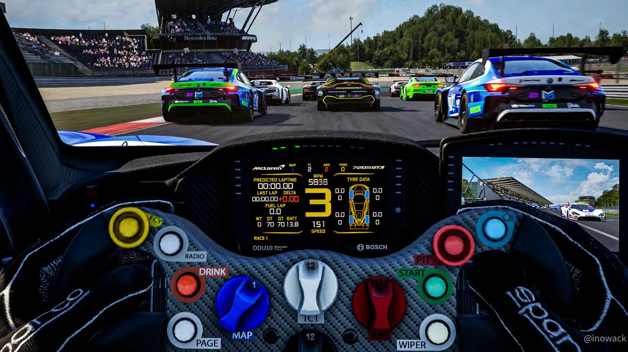 na rizik. Već u prvim krivinama dogodilo se nekoliko kontakata, borbe su se vodile za sve pozicije, a greške su se kažnjavale trenutno – jedan pogrešan ulazak u šikanu značio je gubitak dve ili tri pozicije. Ferari vozači ponovo su diktirali ritam, dok su BMW i Aston Martin pokušavali da uhvate korak u sredini poretka. Iz svega što je viđeno, jasno je da ono što je nekada bila zabava za entuzijaste sada je postalo takmičenje koje spaja digitalno i stvarno trkanje, sa istim