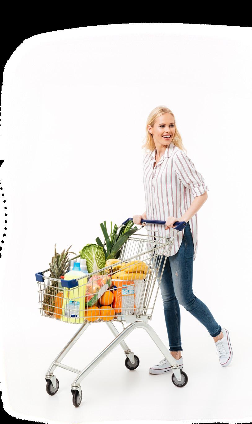 Del mismo modo que los dietistas suelen decir a la gente que llene la mitad de sus platos con fruta y verdura, lo mismo ocurre a la hora de hacer la compra. Llena la mitad de tu cesta con frutas y verduras. Busca una variedad de tipos y colores de productos. ¡Cada color tiene un beneficio diferente y maravilloso para tu cuerpo!