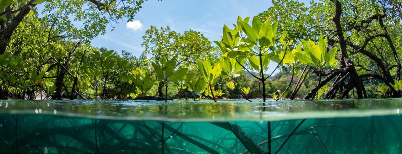 En los distintos continentes, los manglares constituyen una parte de los humedales costeros. Los árboles de los manglares crecen en agua salada y cuentan con raíces características que se van extendiendo por encima y por debajo del agua en suelos espesos y fangosos. Además de poder compararse con los bosques por su capacidad de almacenar carbono, lo que ayuda a combatir la crisis climática, también sirven de sustento para la vida de los humanos y una variedad de animales y plantas que viven en los océanos y ríos.
