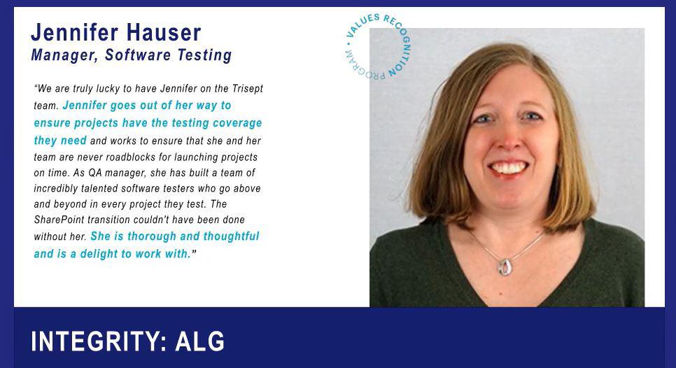 During the Town Hall, the winner of the Values Awards, Jennifer Hauser, was introduced; congratulations on this achievement!