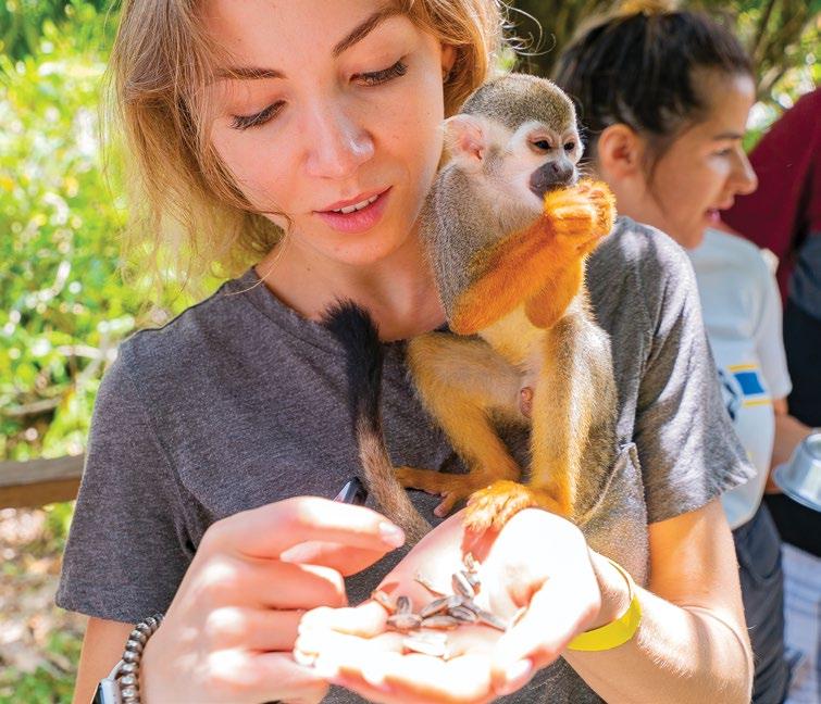 A fantastis adventure combo. First, Gear-up and get ready for some serious zip lining! Let loose and soar through the jungle, rainforest, and across a river on an 8-line circuit covering 1.5 miles of adrenaline pumping zips! Guides will be at each platform you reach, ready to steady you and assist on your next line! Then, it’s off to Monkey Land, a protected reserve tucked away In the tropical jungle. Listen to the sounds of nature while keeping an eye out for cute little squirrel monkeys that abound in this natural habitat. An awesome opportunity to get up close and interact with these loveable, fun little creatures of the jungle canopy.