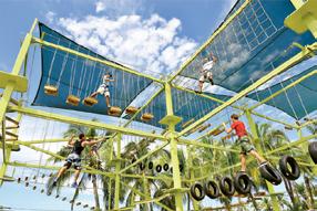 Soar from treetop to treetop on over 14 scintillating zip lines covering more than 2 miles and fly like an eagle above the jungle floor and Los Horcones River. Admire incredible views of the jungle canopy and the raging waters of the river below. Then, slide down slippery water slides into natural pools formed by the river for a refreshing swim and kayaking. Later, visit a wonderful animal sanctuary and discover exotic tropical birds, monkeys, iguanas and other reptiles. Speedboat transportation available!