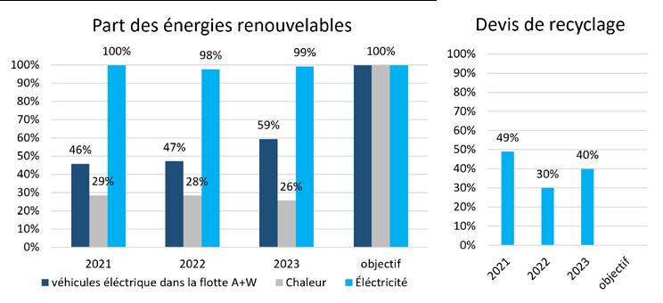 g-i.A+W n’utilise que de l’énergie renouvelable domestique pour l’ensemble de ses sites à partir de 2018 pour l’électricité (g), ensuite le chauffage (h) et sa flotte de véhicules jusqu'en 2035 (i).