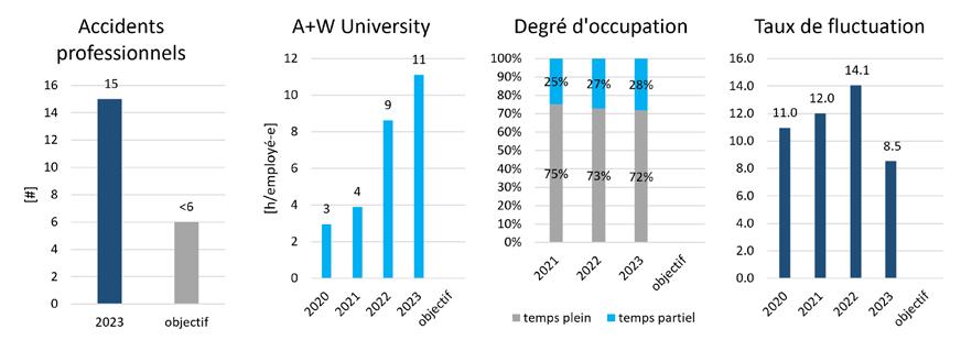 c. A+W participe à des formations externes en mettant à disposition des heures sur le temps de travail ou en finançant les coûts de formations pour ses collaborateurs et collaboratrices.
