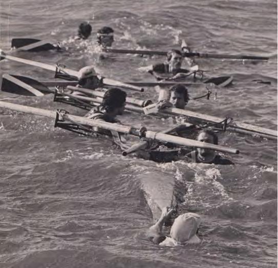 Na de instructie kwam het wedstrijdvaren in een acht ter sprake. Deze acht roeisters vormden al gauw een vriendengroep, en vele seizoenen bleven zij aan wedstrijden meedoen. Het fotoboek komt op tafel, met kiekjes van onder andere de Naarden Bumping en de bijpassende verhalen over coaches zoals Dick Severiens.