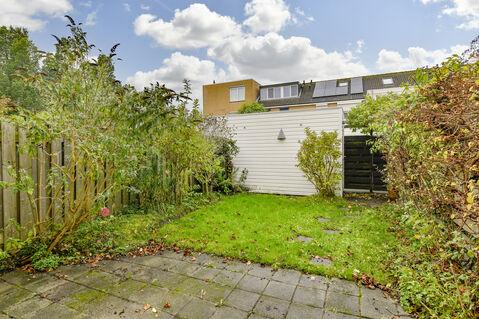 Achter de woning ligt een ruime tuin met een ligging op het westen. De tuin is afgewerkt met een mix van bestrating, beplanting en een gazon. In de tuin is er volop ruimte voor een gezellige lounge- en/of eethoek.
