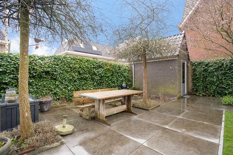 De woning is gelegen op een groot perceel. De hoofd-/achtertuin is perfect gelegen op het zuiden. Het gazon ligt er strak bij en de grote tuintegels zijn zorgvuldig gelegd. Overal om je heen zie je prachtige planten in verschillende kleuren en de fruitbomen zitten in het voorjaar vol met bloesem.