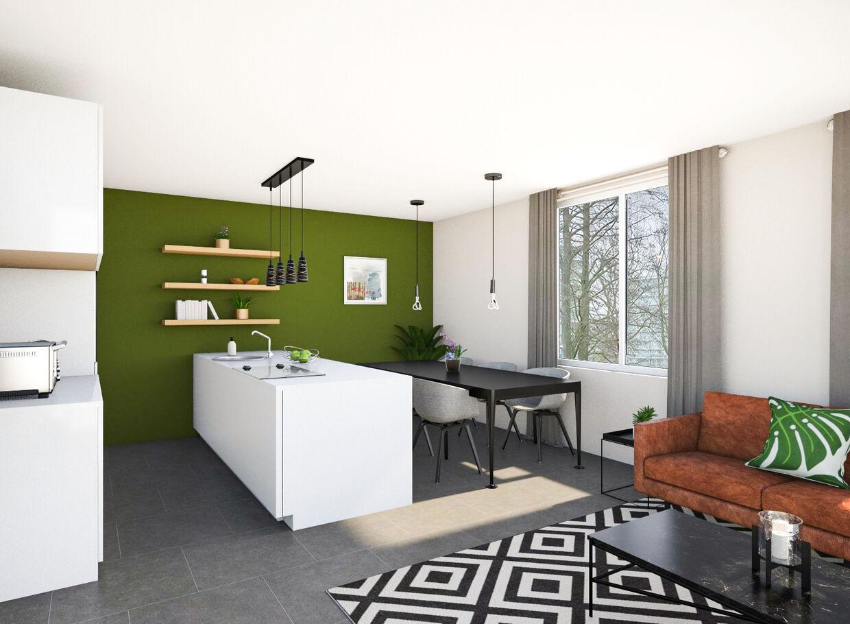De woonkamer voelt zeer licht en kijkt prettig weg over de omgeving en het park. De moderne open keuken is voorzien van alle gemakken, zoals een hittebestendig blad, 5-pits inductie kookplaat, downdraft afzuigkap, Quooker, combi-oven, koffiemachine, vaatwasser en een koel-/ vriescombinatie.