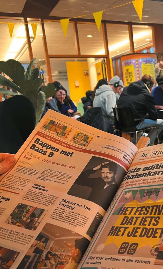 de buurt worden verzameld. ‘Overal zijn verhalen. Daarom gaan we zelf naar de mensen toe. We willen iedereen de kans geven om zijn of haar verhaal te vertellen’, zegt de Bibliotheek Amstelland. ‘Zo wordt het festival een plek waar verhalen letterlijk van de straat tot in de bieb tot leven komen.’
