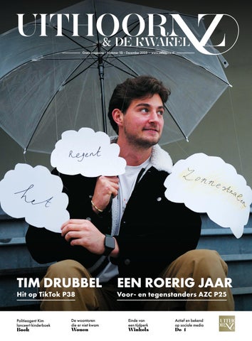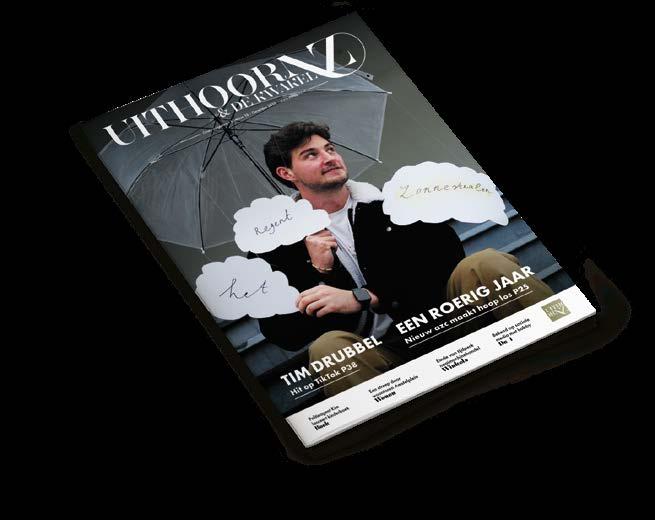 Op de cover staat Uithoornaar Tim Drubbel, die viraal ging met zijn TikTok-reeks waarin hij elke dag een woord uit ‘Het regent zonnestralen’ zong. Een onverwachte hit, en terecht. Dat iemand uit onze gemeente met zoveel eenvoud en plezier de wereld vermaakt, laat zien hoe bijzonder ‘gewoon’ Uithoorn eigenlijk is.