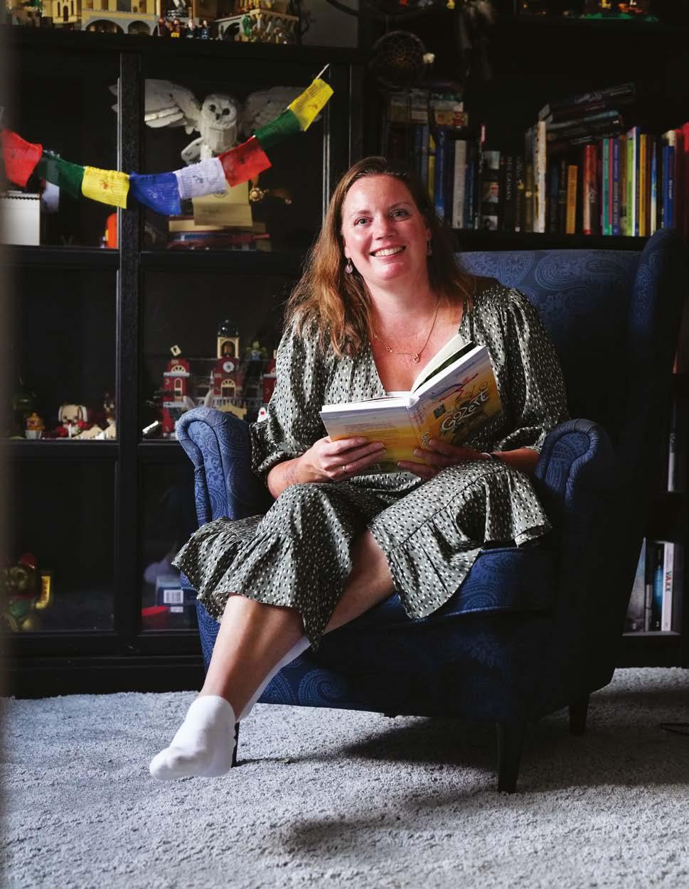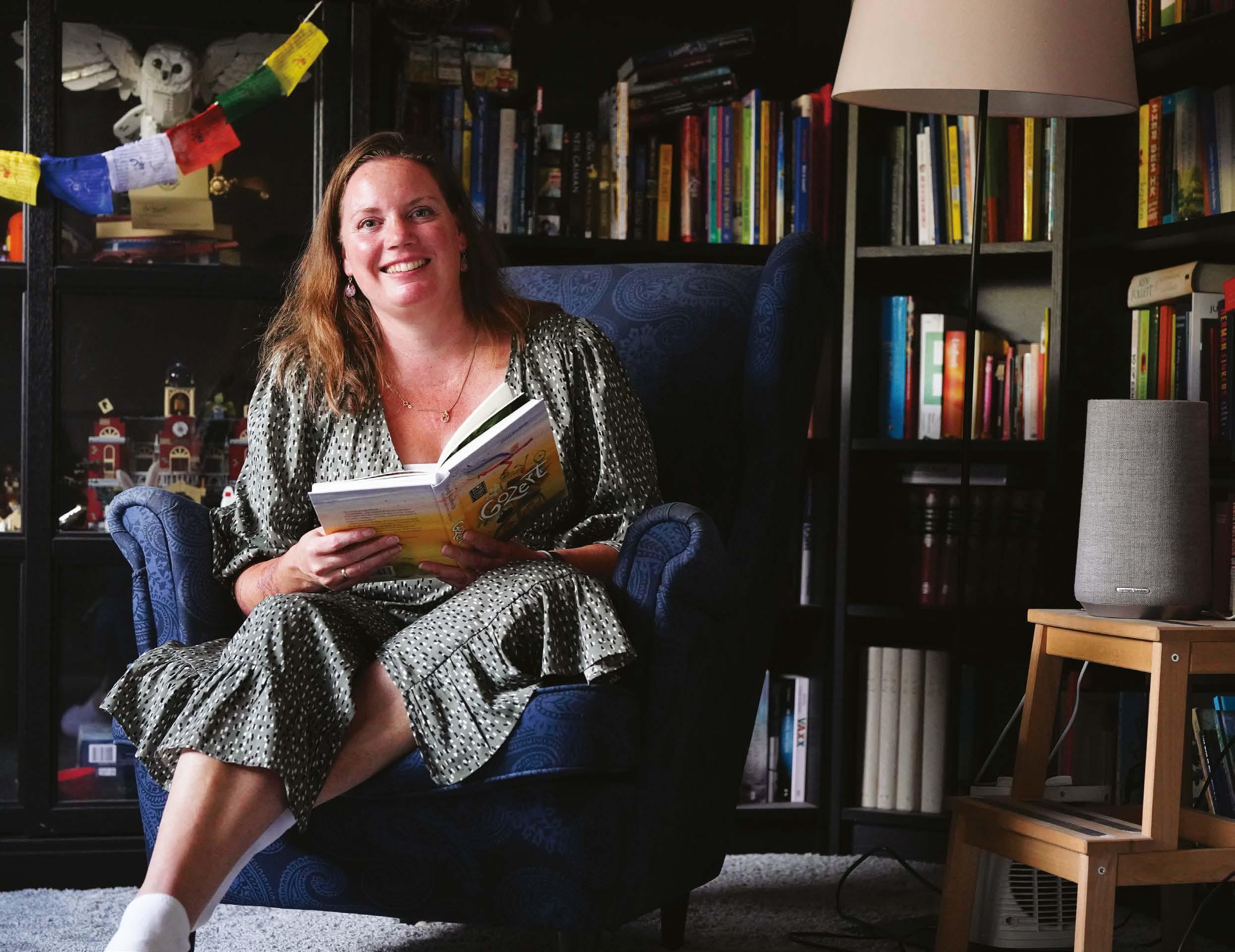 Marjolein heeft verschillende favoriete plekken in huis waar ze graag leest. In het hoekje van de bank, in de tuin of op zolder, voor haar boekenkast. Overal in het huis vind je boeken. ‘Lezen is een manier om even in een andere wereld te kruipen,’ aldus Marjolein. Soms is dat een fantasierijke wereld, zoals bij Harry Potter. Maar ze houdt ook van prentenboeken. Ze geeft de voorkeur aan boeken waarin een diepere laag zit verborgen en leest graag kinder- en jeugdboeken. ‘Boeken kunnen je echt verrassen. Zoals ‘Ik heet Reinier en ons huis is afgebrand’ door Joke van Leeuwen. Een boek voor kinderen. Ik huil vrijwel nooit bij het lezen van een boek, maar dat was een uitzondering!’