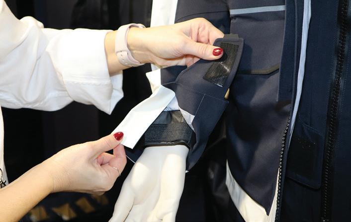 has been a waterproof rear zip in the women’s waterproof trousers, allowing a much easier and more comfortable use of the toilet in poor weather. Also developed as part of the range has been a new ‘hybrid’ smock, so the wearer no longer needs to pull the garment over their heads to undress. The smock can now be unzipped from the front. The Ocean Pro jacket took three years to develop, and the original prototype – looking in remarkably good condition after its tough life – was on display alongside the final version.