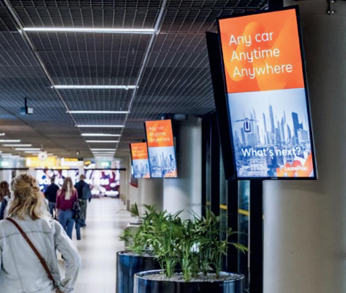 The Food Collective restaurant outer windows can be seen from the central area between halls 1, 11 and 12. Anyone coming up the escalator form the entrance will directly notice this item. 5900 x 1000mm.