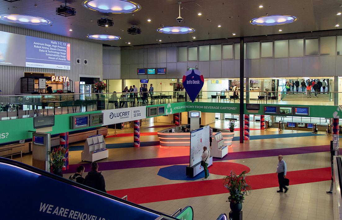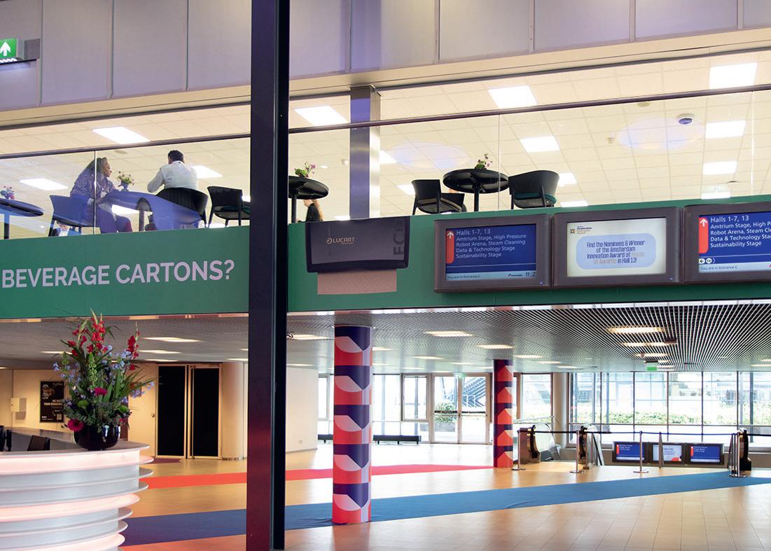 Throughout RAI Amsterdam, interactive wayfinding screens help thousands of visitors navigate Interclean. Featuring the floorplan and full exhibitor list, these screens are one of the most-used tools during the show.