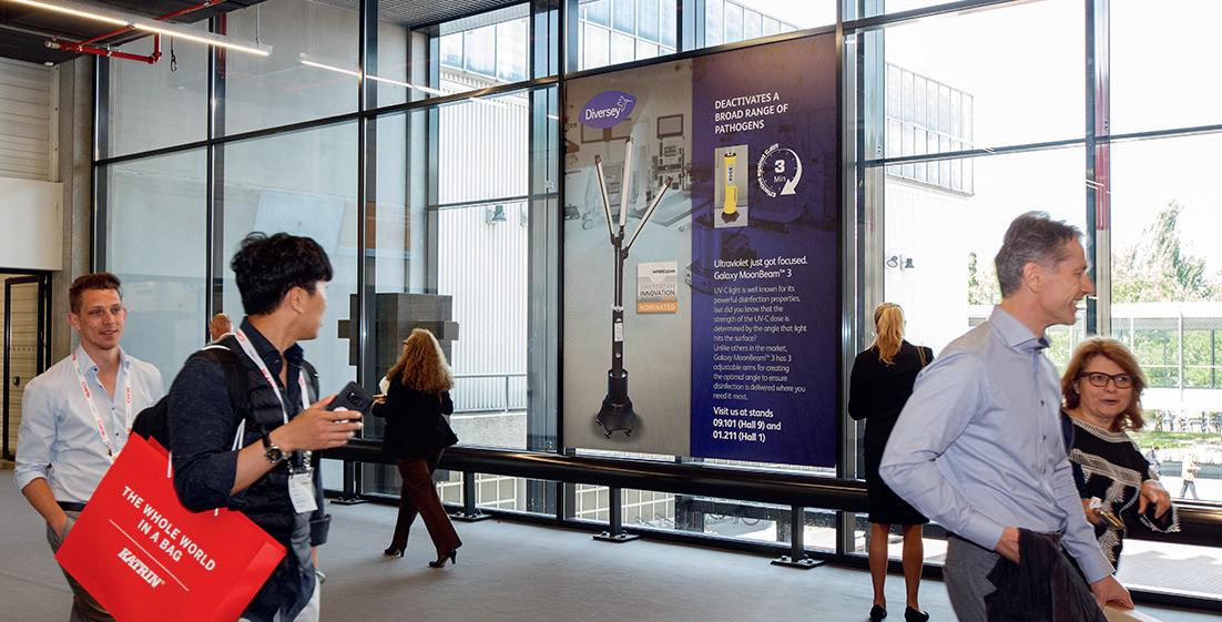 Have your 20-second video advertisement at the very prominent Interclean banner running at Entrance K (max 5 available).