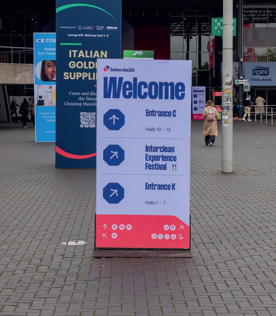 Throughout RAI Amsterdam, interactive wayfinding screens help thousands of visitors navigate Interclean. Featuring the floorplan and full exhibitor list, these screens are one of the most-used tools during the show. By placing your logo on the screens, your brand will be seen repeatedly as visitors search for halls, stands, and exhibitors, ensuring high visibility across all 4 days.