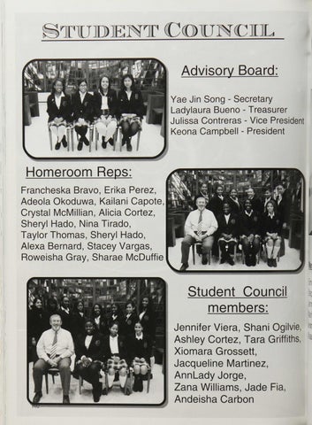 student Council members: Jennifer Viera, Shani Ogilvie, Ashley Cortez, Tara Griffiths, Xiomara Grossett, Jacqueline Martinez, AnnLady Jorge, Zana Williams, Jade Fia, Andeisha Carbon