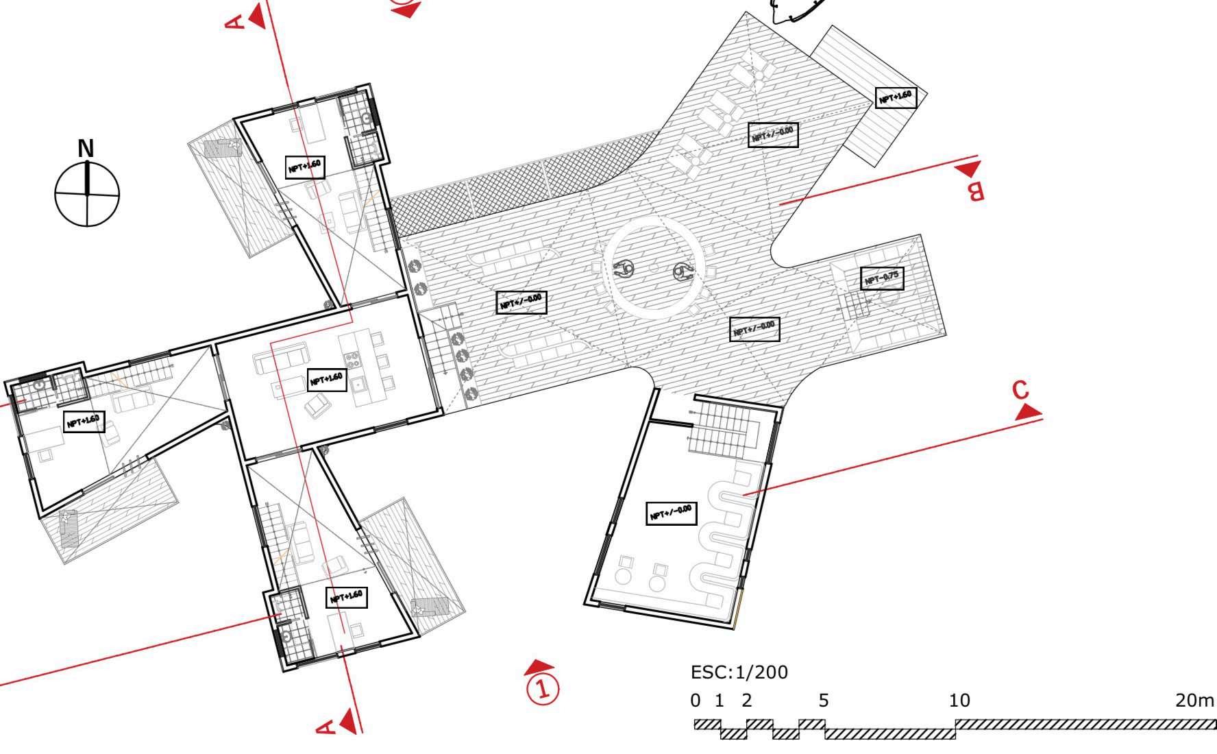 Purposely intricate roof to dissipate sunlight but maximising energy usage to brighten spaces