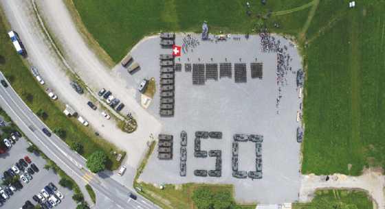 Das Bataillon in voller Pracht und die Fahrzeuge als 150 aufgereiht. Bild: PD