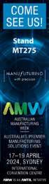 Hellard Sonya Murphy Drew Turney Sales Manager Nicholas Raftopoulos nraftopoulos@amtil.com.au Publications Co-ordinator Caroline Robinson publications@amtil.com.au Publisher Shane Infanti sinfanti@amtil.com.au Designer Franco Schena fschena@amtil.com.au Prepress & Print Printgraphics Australia AMT Magazine is printed in Australia under ISO140001 Environmental Certification using FSC® Mix certified paper sourced using sustainable tree farming practices. Contact Details AMT Magazine AMTIL Suite 10, 5 Corporate Boulevard Bayswater VIC 3153 AUSTRALIA T 03 9800 3666 F 03 9800 3436 E info@amtil.com.au W amtil.com.au Copyright © Australian Manufacturing Technology (AMT). All rights reserved. AMT Magazine may not be copied or reproduced in whole or part thereof without written permission from the publisher. Contained specifications and claims are those supplied by the manufacturer (contributor). Disclaimer The opinions expressed within AMT Magazine from editorial staff, contributors or advertisers are not necessarily those of AMTIL. The publisher reserves the right to amend the listed editorial features published in the AMT Magazine Media Kit for content or production purposes. AMT Magazine is dedicated to Australia’s machining, tooling and sheet-metal working industries and is published bi-monthly. Subscription to AMT Magazine (and other benefits) is available through AMTIL Associate Membership at $190.00 (ex GST) per annum. Contact AMTIL on 03 9800 3666 for further information. 1822AMTAPR/MAY2024