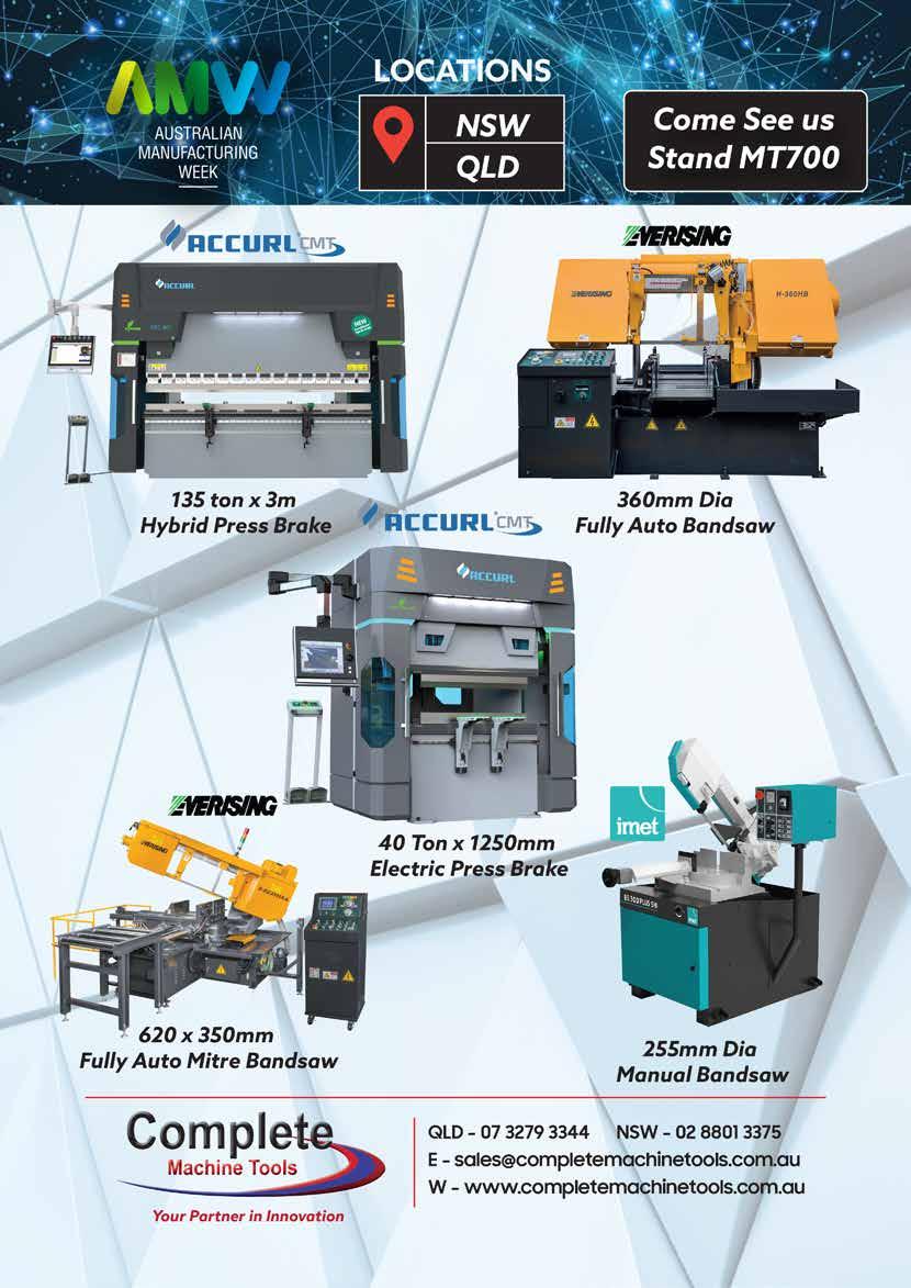 Call: Email: Visit: 03 9706 8066 sales@appliedmachinery.com.au appliedmachinery.com.au Fiber Lasers • CNC Machining Centres • Pressbrakes • Deburrers • Automation and more. “WE GET EXPERT ADVICE AND SUPPORT THAT ONLY A LOCAL SUPPLIER LIKE APPLIED MACHINERY CAN PROVIDE. THEY’RE A TRUE MACHINERY PARTNER.” TIM LIGHTFOOT, MITS ALLOY, NEWCASTLE, NSW Visit us at AMW on stand MT 515, Sydney 17-19th April 2024