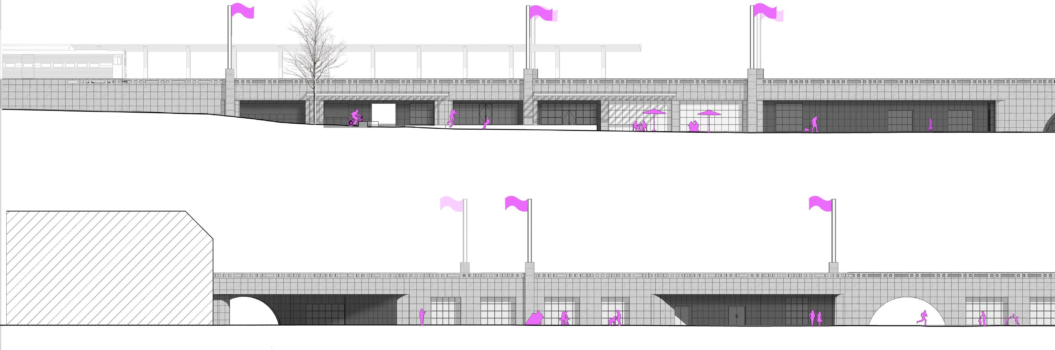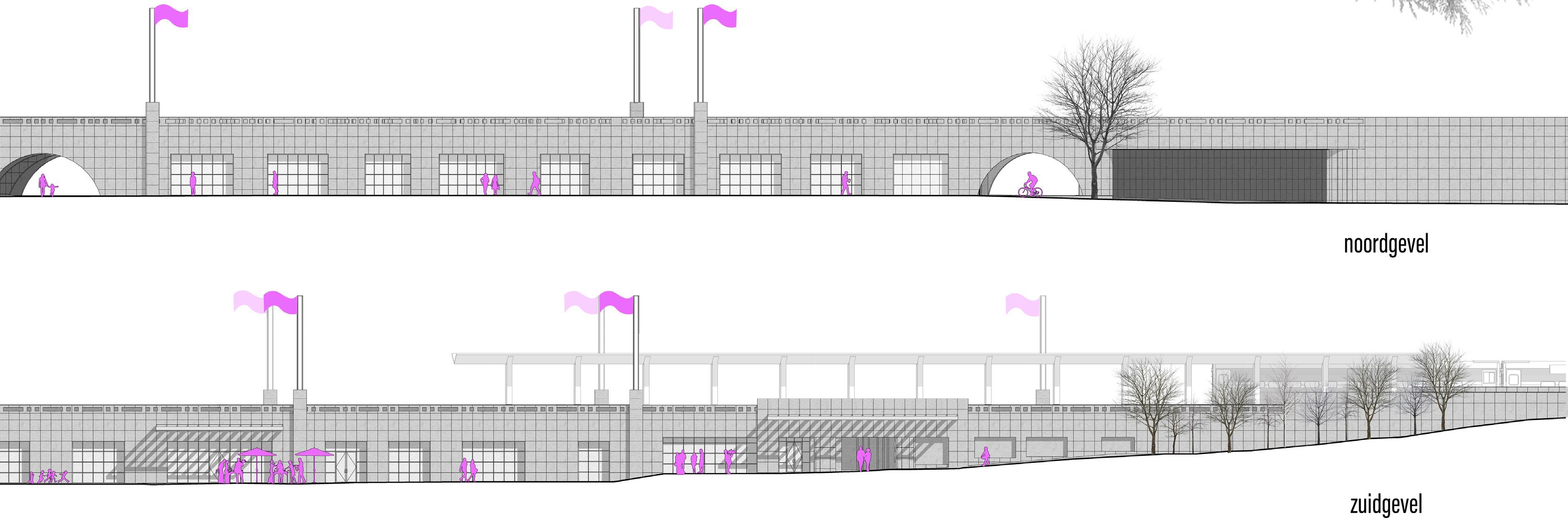 We repurposed these vacant spaces into an interdisciplinary school that gives access to various generations with technical- and proffesional carreer paths. The public space enters through arches creating visual connections between all the working rooms. The arches are wide and provide a whole new circulation to the site. What was seen before as a divinding wall in the heart of Brussels becomes a porous place of gathering for work and leisure.