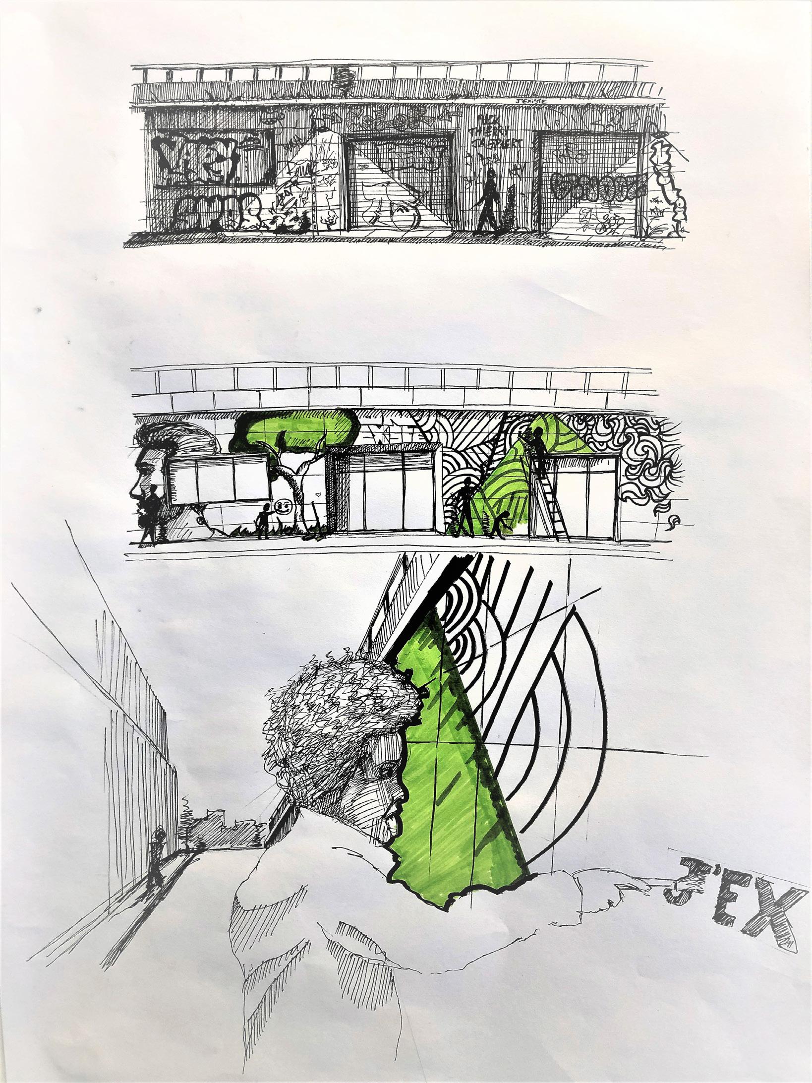 We inspired ourselves with this reference, we seek for horizontal connections that would interact transversally with one another.
