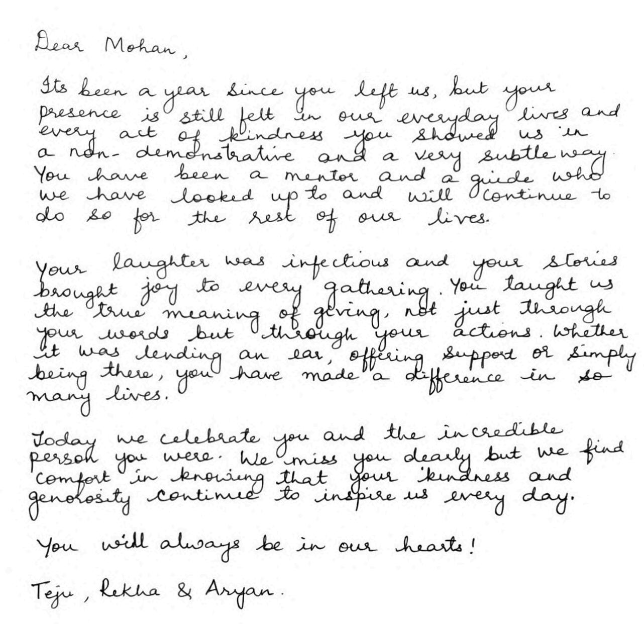 w o u l d l i k e t o r e m e m b e r o u r M o h a n u n c l e a s t h e s w e e t e s t p e r s o n .
