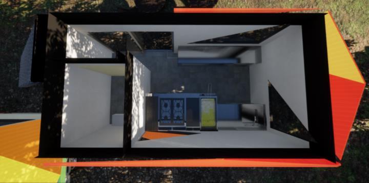 Gracias a su diferencia de alturas y ventanas en dicha diferencia, la entrada de luz solar es possible en toda dirección, por lo que se reduce costos de iluminación y, durante épocas de otoño y primavera, también se ahorra