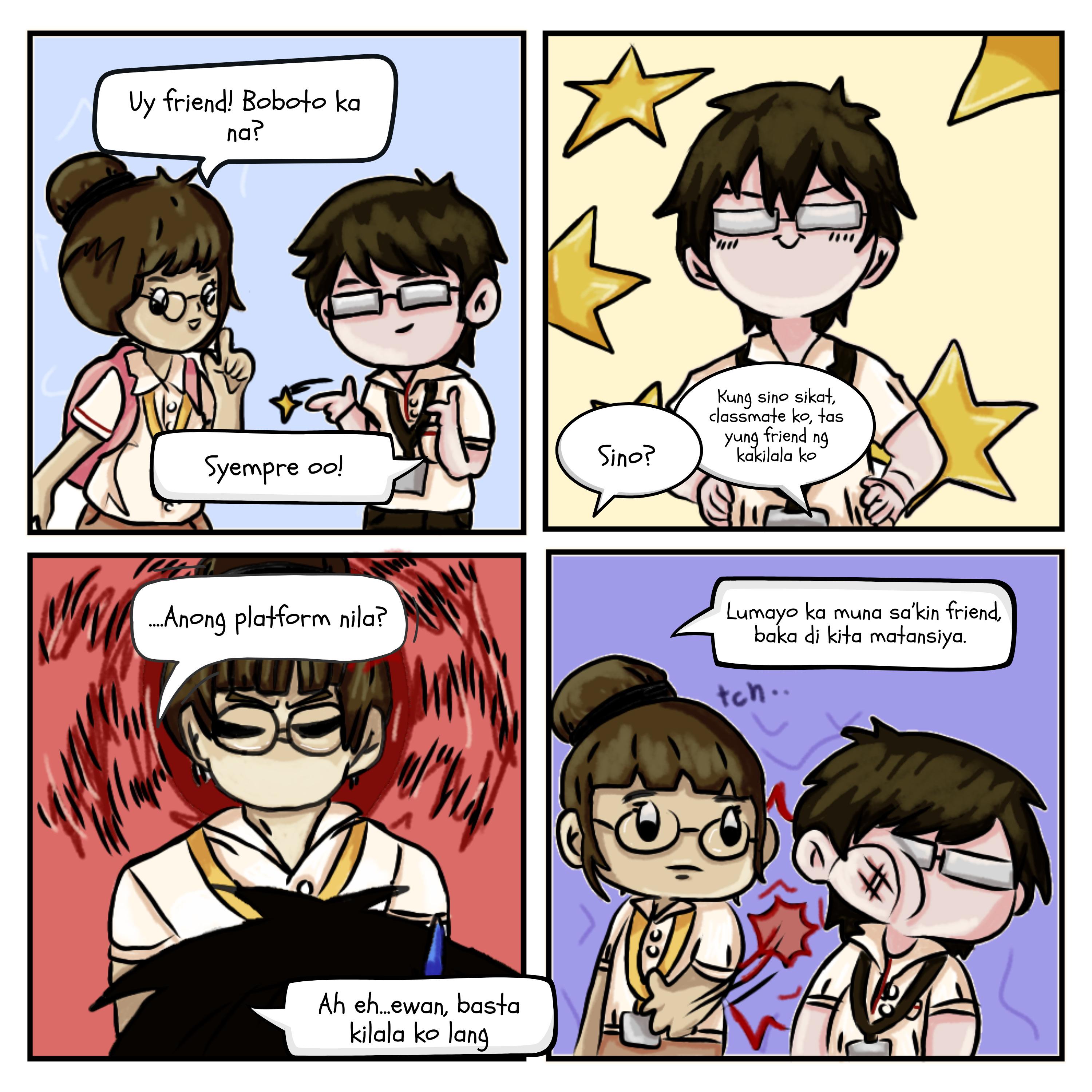Switching from one social media platform to another, one post stood out among the sea of posts asking for academic guidance and grade curves. It was a rant about the projects of a partylist for the upcoming election. The party was implicitly identified, but Emilio couldn’t care less about it. However, he was perplexed that someone had given a second glance at the post amidst their busy schedule, let alone put effort into analyzing the pros and cons of each member’s project in a specific party. Perhaps they were from the opposing side? Emilio was tired but felt curious. With nothing better to do than to go back to studying, he decided to dig deeper into the topic. After all, who doesn’t love drama? There’s nothing more fun than criticizing a critique, and his practice exercises could wait ‘til tomorrow.