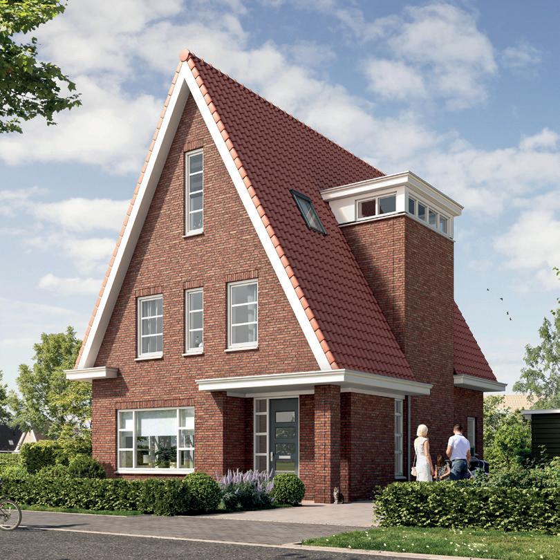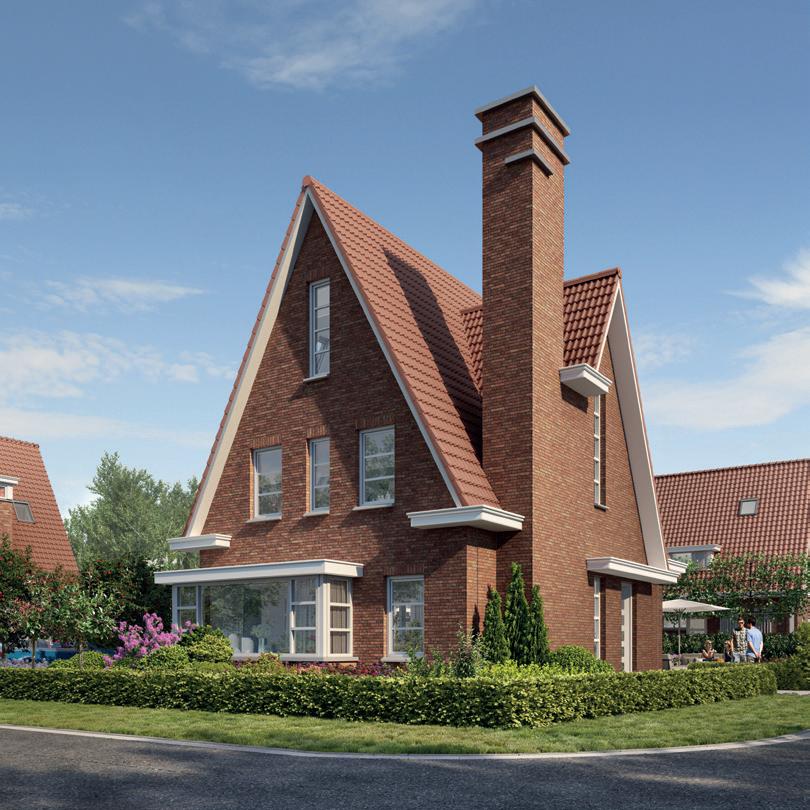 De gemetselde schoorsteen met stijlelementen maakt Tureluur inderdaad extra imposant. Maar er is meer. Niet in de laatste plaats de dwars- en langskap en de hoek-erker die samen het woonoppervlak van 186 m2 realiseren. Daar horen uiteraard mooie hoekpercelen bij!