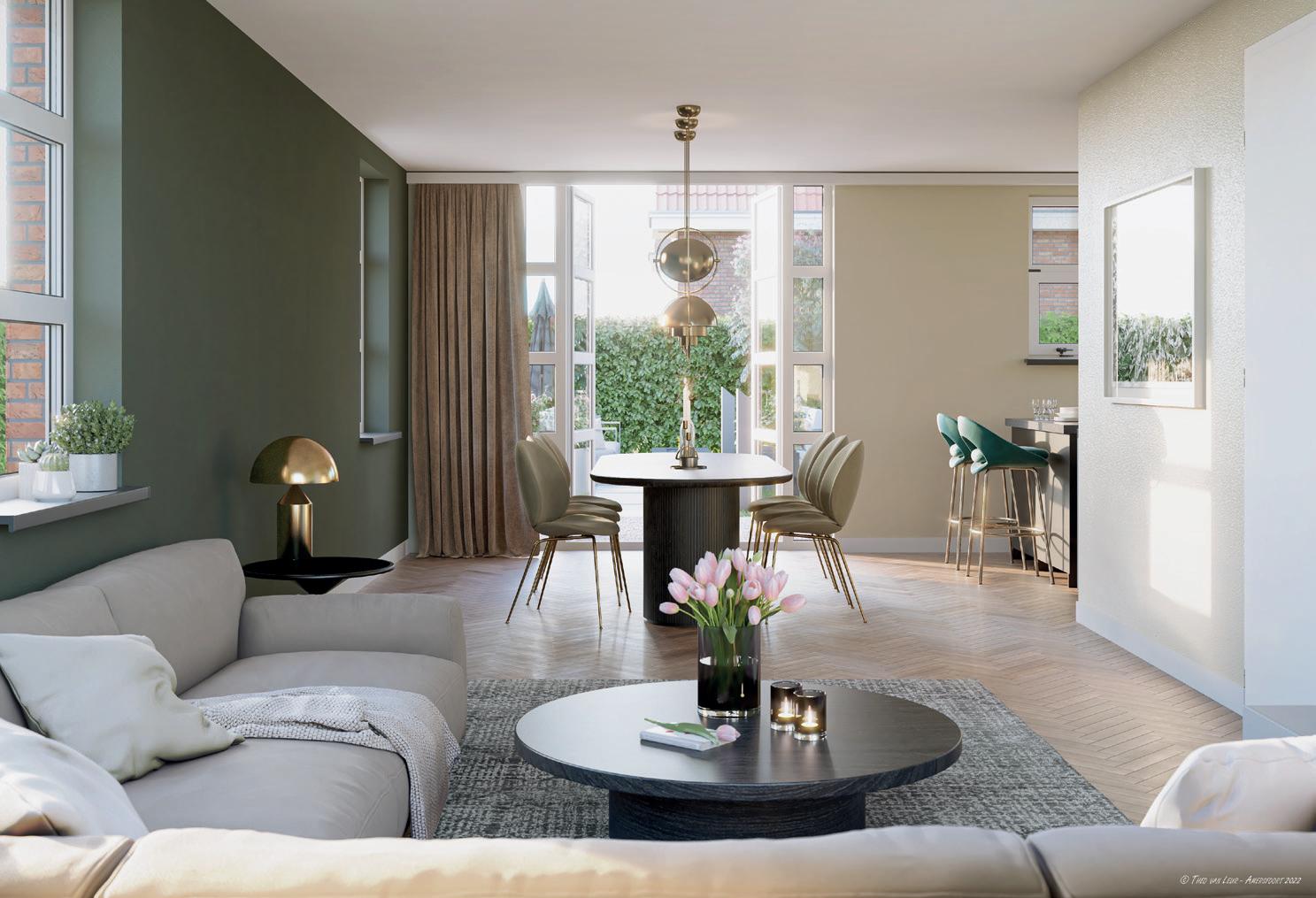 Type Kluut nestelt zich in het hart van de wijk, met vijf woningen aan de Inlaagdijk en vijf aan de Middeldijk. Met 150 m2 woonoppervlak genereren ze veel aantrekkingskracht. De entreehal brengt u in het hart van de woning. Binnen verrast de diepte van bijna elf meter met aan de voorzijde de keuken en aan de achterzijde de woonkamer met rondom zicht op de tuin.