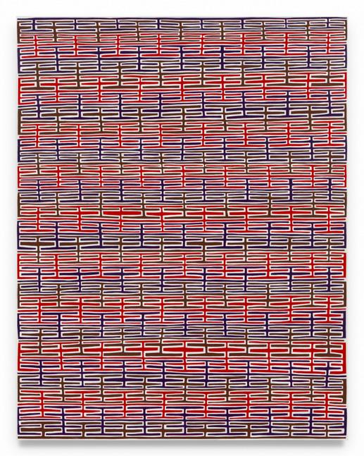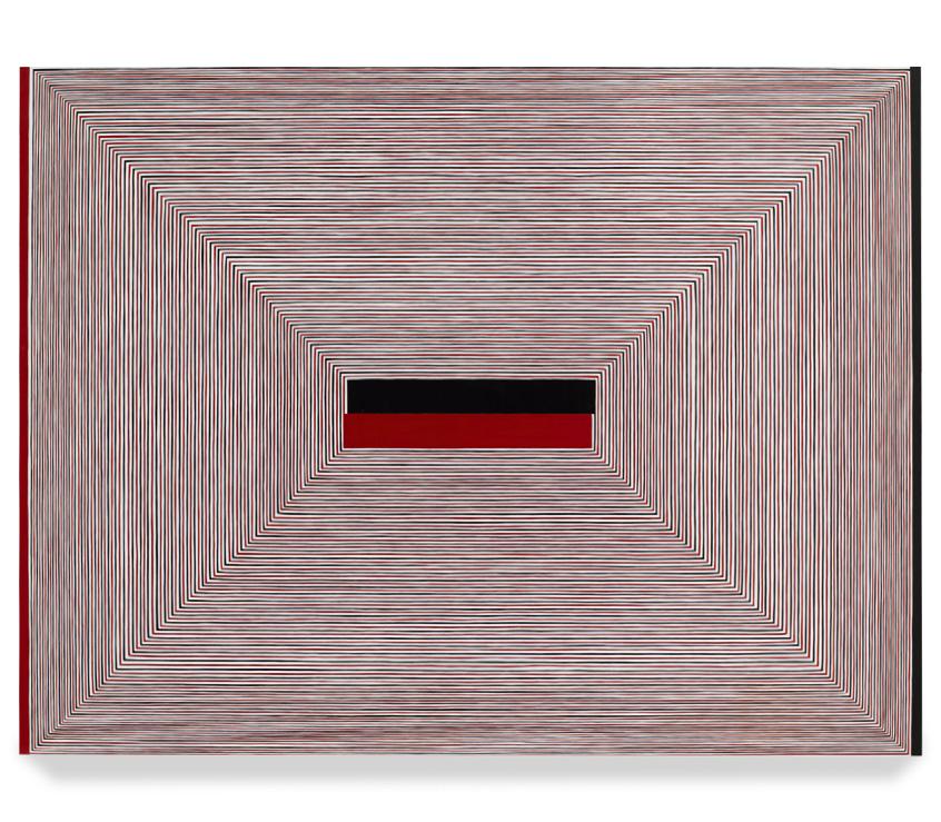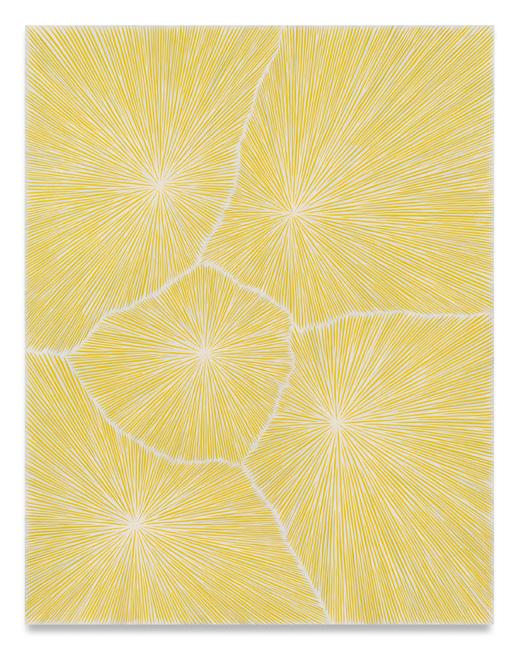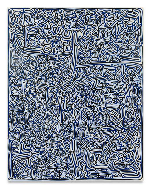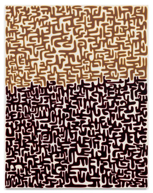 “Executing premeditated compositional directives freehand and using the slick combination of sign painter’s enamel on aluminum, Siena creates jiving geometric patterns whose careful craftsmanship marks them with durational depth and attractive immediacy. While the underlying structures of his compositions afford them a measured integrity, the unruliness of the lines’ behavior makes them come alive.”