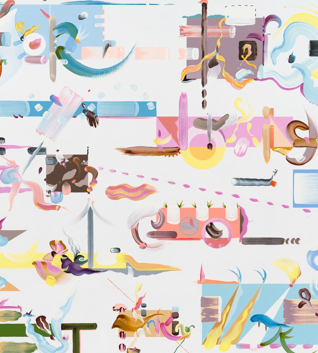 “At play in the fields of abstraction, British artist Fiona Rae forces us to consider what indeed is abstraction. Could it be a part removed from a whole, or a piece used to construct a form? Can it stand alone? While this might appear to be a simple and overused trope today, it remains a provocative one, sitting at the core of anything we call art, and Rae’s works are truly art about art.”