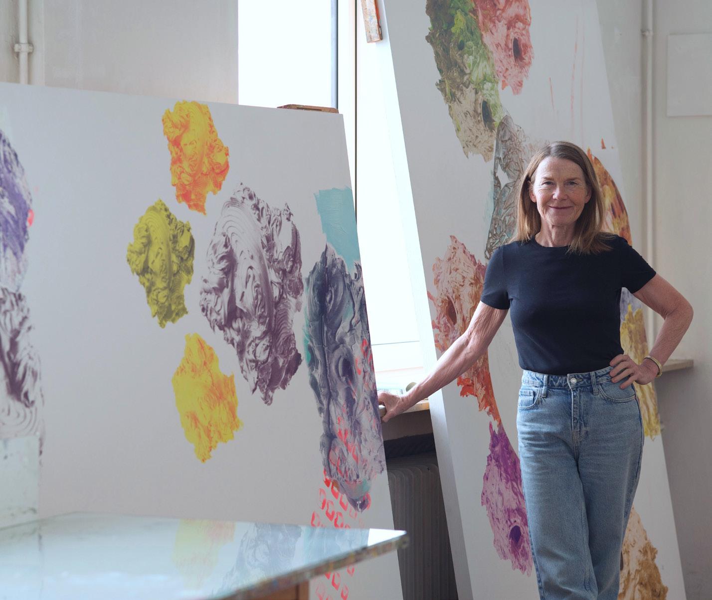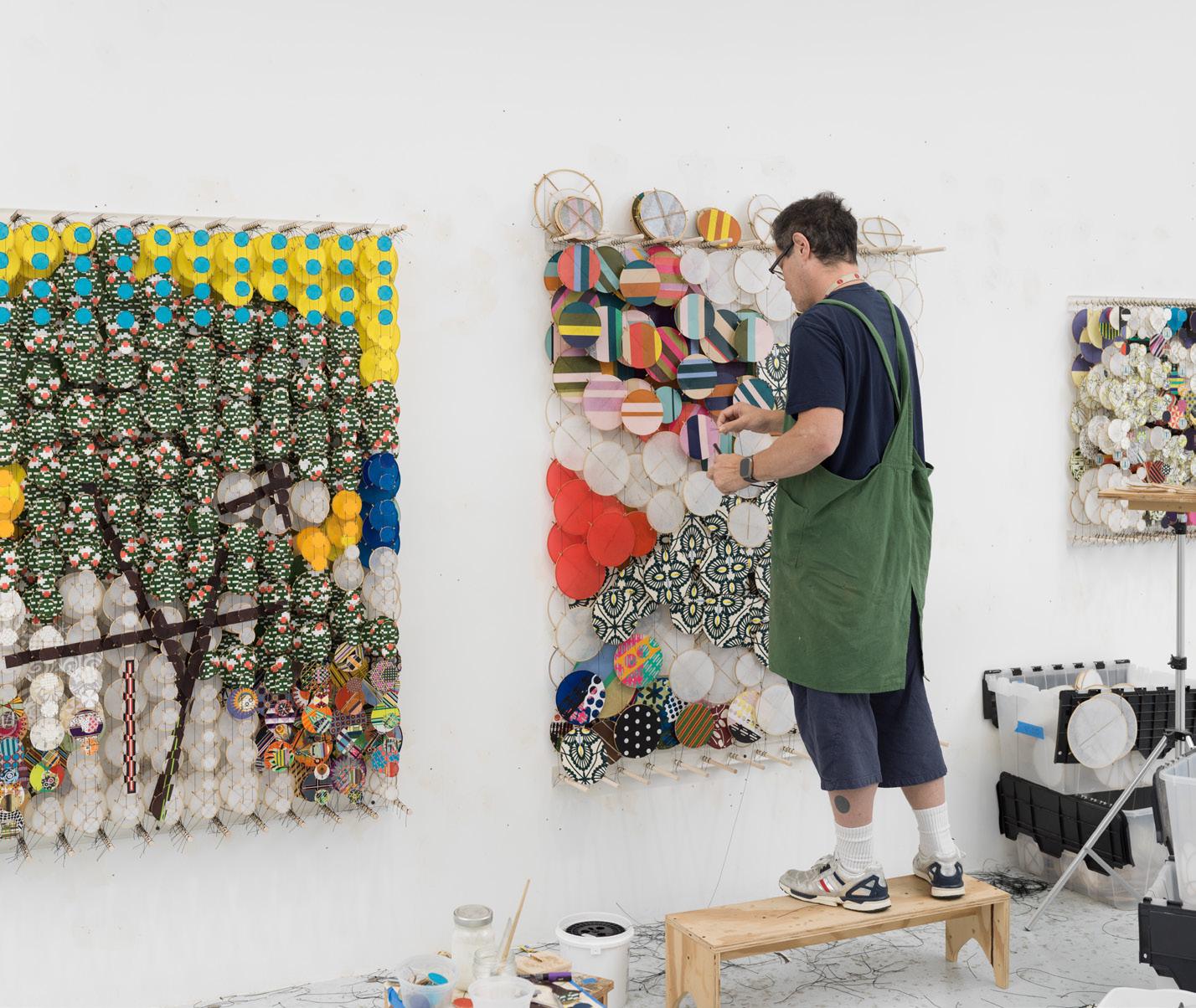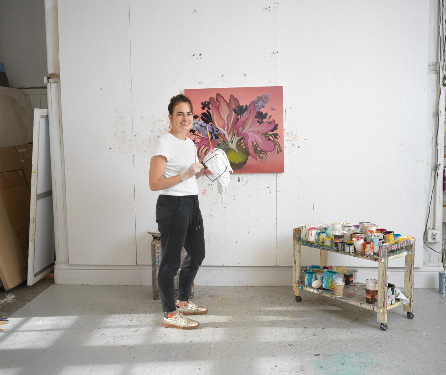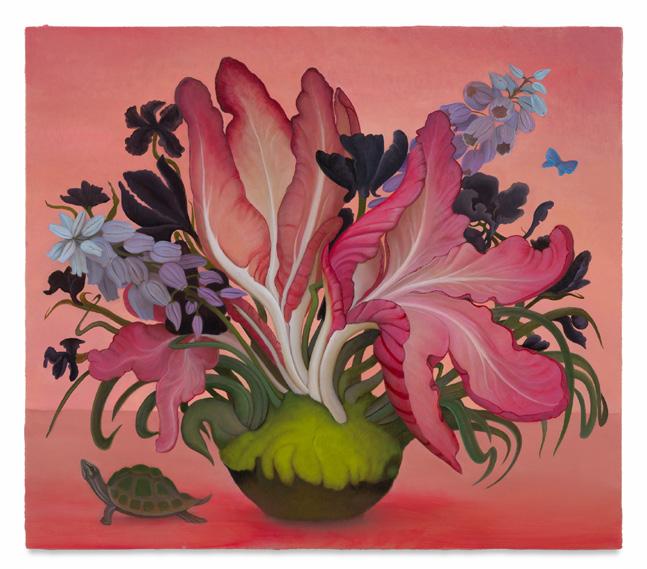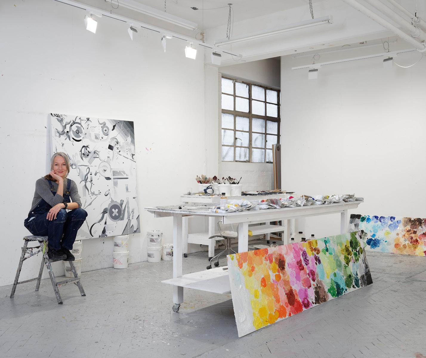 “Inka Essenhigh believes painting is a private matter... [she] spends her studio days drinking coffee and passionately working and reworking her fantastical nature-inspired canvases until her paintings resonate with her intuition. She doesn’t let just about anybody see her work—until it’s finished, that is—and her only visitor is often her husband the painter Steve Mumford, delivering lunch or yet another cup of coffee. Such intimacy is essential; Essenhigh’s ethereal and fantastical landscapes are painted entirely from her imagination, without preparatory drawings or sketches, and Essenhigh must steer clear of outside influence. But when her works are completed, they are luminous.”