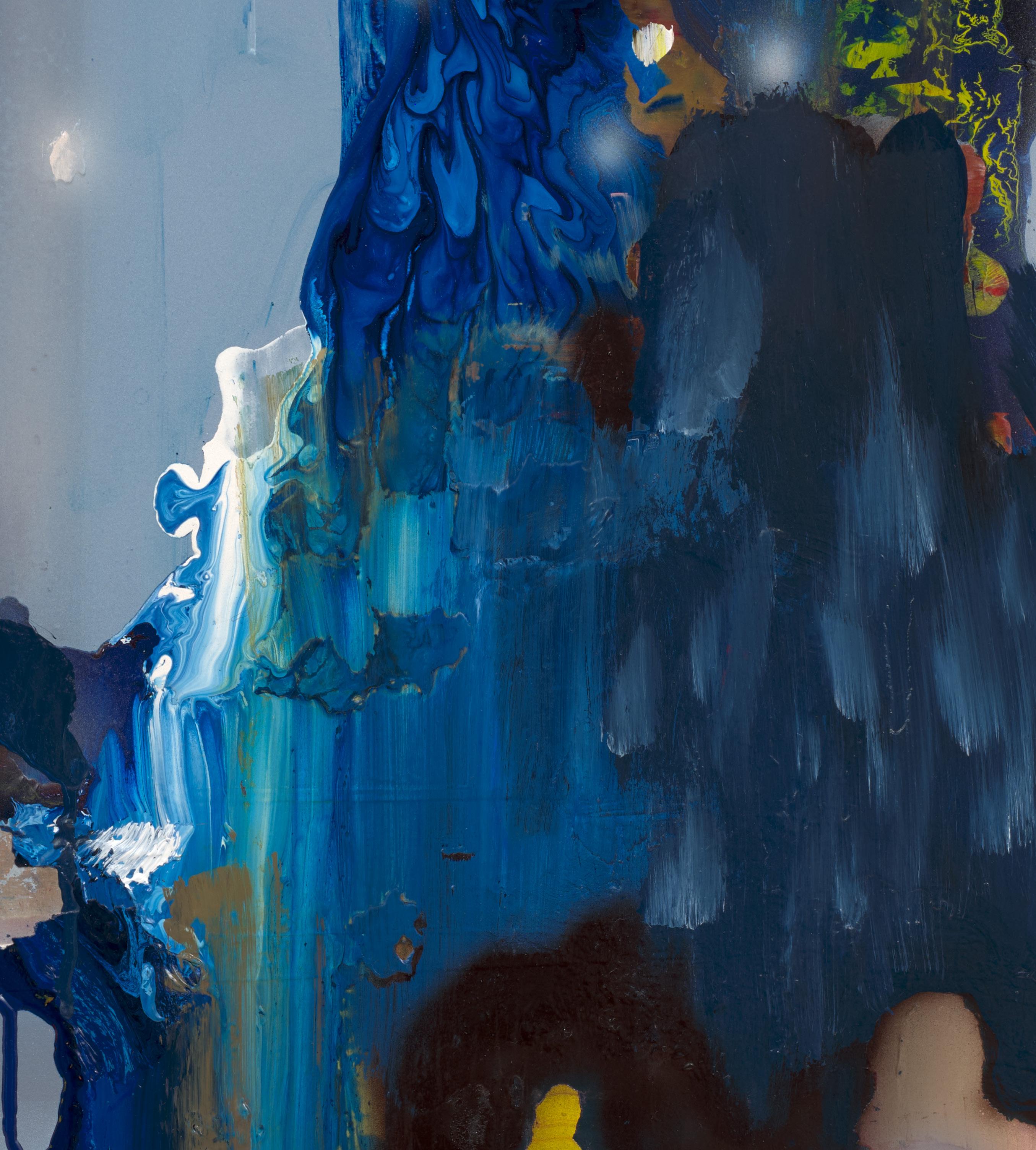 Oil, acrylic, spray paint, and wax on canvas