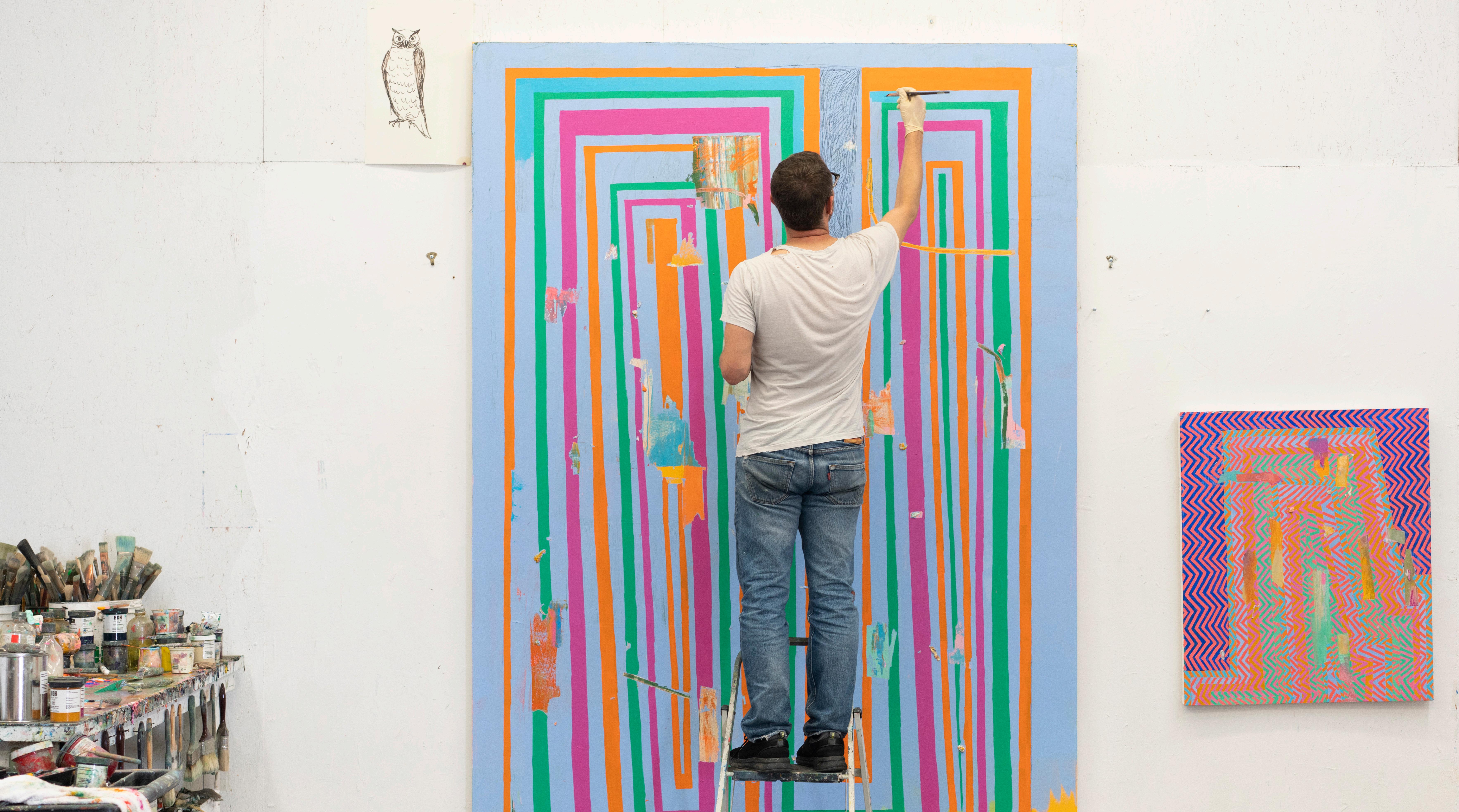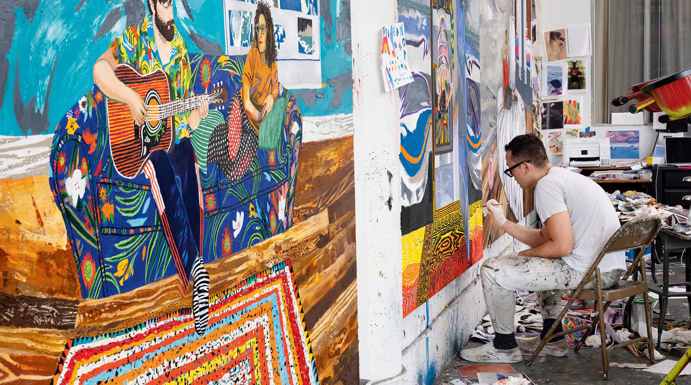 “Kalenderian has turned his instinctive admiration into a methodology. He mainly depicts his own widening circle of friends—a self-reinforcing dynamic, as he has been known to choose his subjects just because he wants to get to know them better. With supreme care and affection, he paints their paintings within his own, in miniature, a process he likens to a musician covering a song. ‘My friends are like celebrities to me,’ he says, and you feel that in his pictures. They are exciting because he is excited when he paints them. ‘I think of portraiture as an opportunity to show love.’”