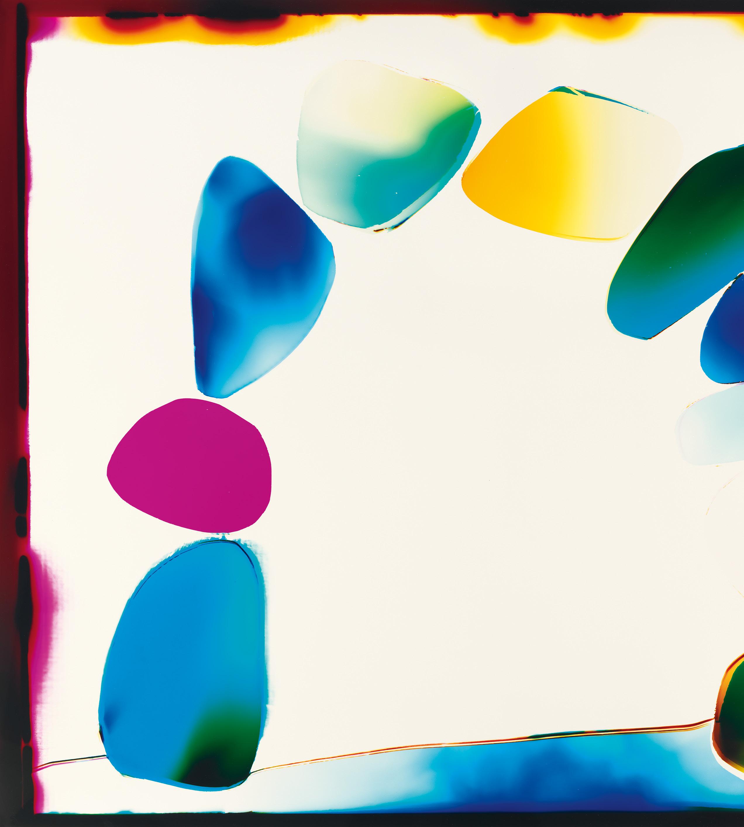 “Wilson’s color relationships are not fixed, either. They move back and forth, in and out, against and with one another. They overlap, completely or partly obscuring one another. But, curiously, they never reveal one another; that is, they never reach a state of transparency in which other color planes take over or even run under their spaces. There is no hierarchy in Wilson’s efficiently described, gracefully balanced choreography, there is only potential—perhaps fixed on canvas, but continuing in the eye of the beholder. Again, perception, in all its inexactitude, allows the viewer to ‘complete the work of art,’ in Marcel Duchamp’s words, as the viewer is wont.”