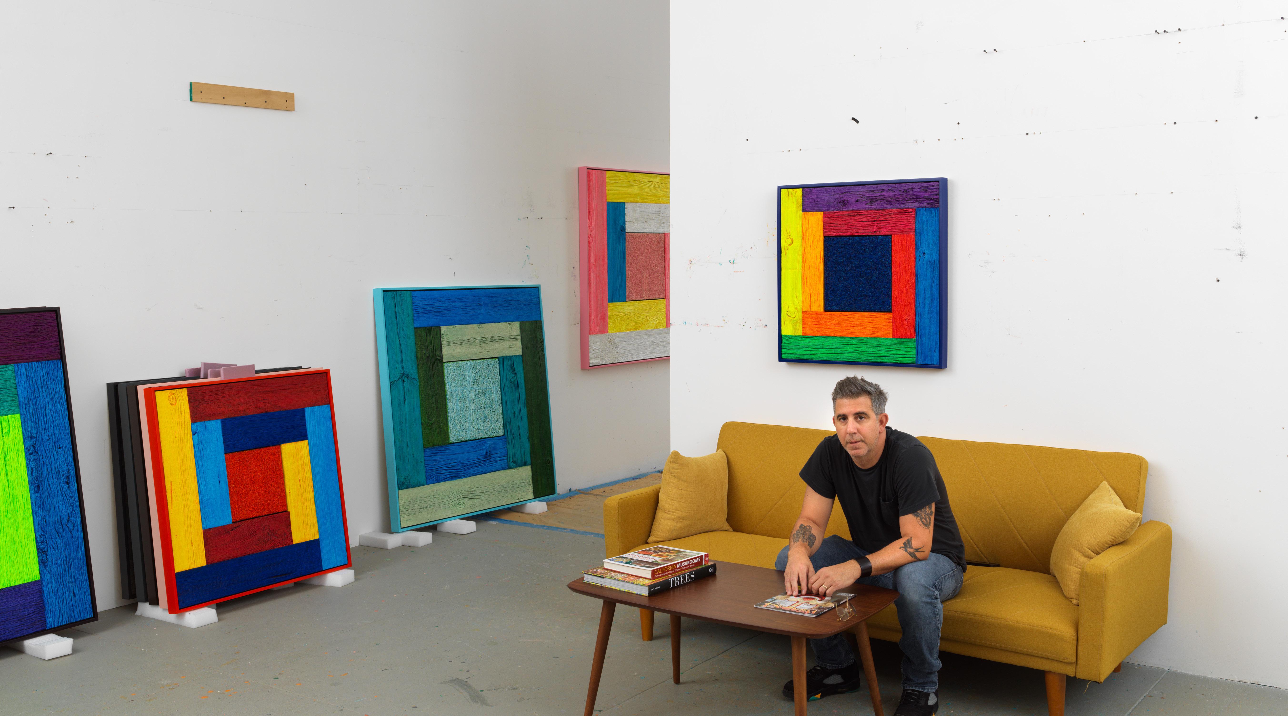 “He uses wood and epoxy resin as vehicles that let pigment do its thing: changing the color of reflected light by absorbing specific wavelengths. Bright, blazing, and over-abundant, his colors are too much to take in on first glance. But give them a little time, and it becomes clear that they have been laid out in meticulously engineered arrangements that are deliberate and dazzling, stunning and sexy. Linnenbrink’s colors compose themselves in a wide range of open-ended rhythms. Each sweeps you up in fluid movements, so your emotions burble up from beneath the surface of buttoned-down rationality and even-keeled restraint, bursting forth, unexpectedly and unpredictably, to deliver a lasting jolt of electrifying energy and an undercurrent of subversive power.”