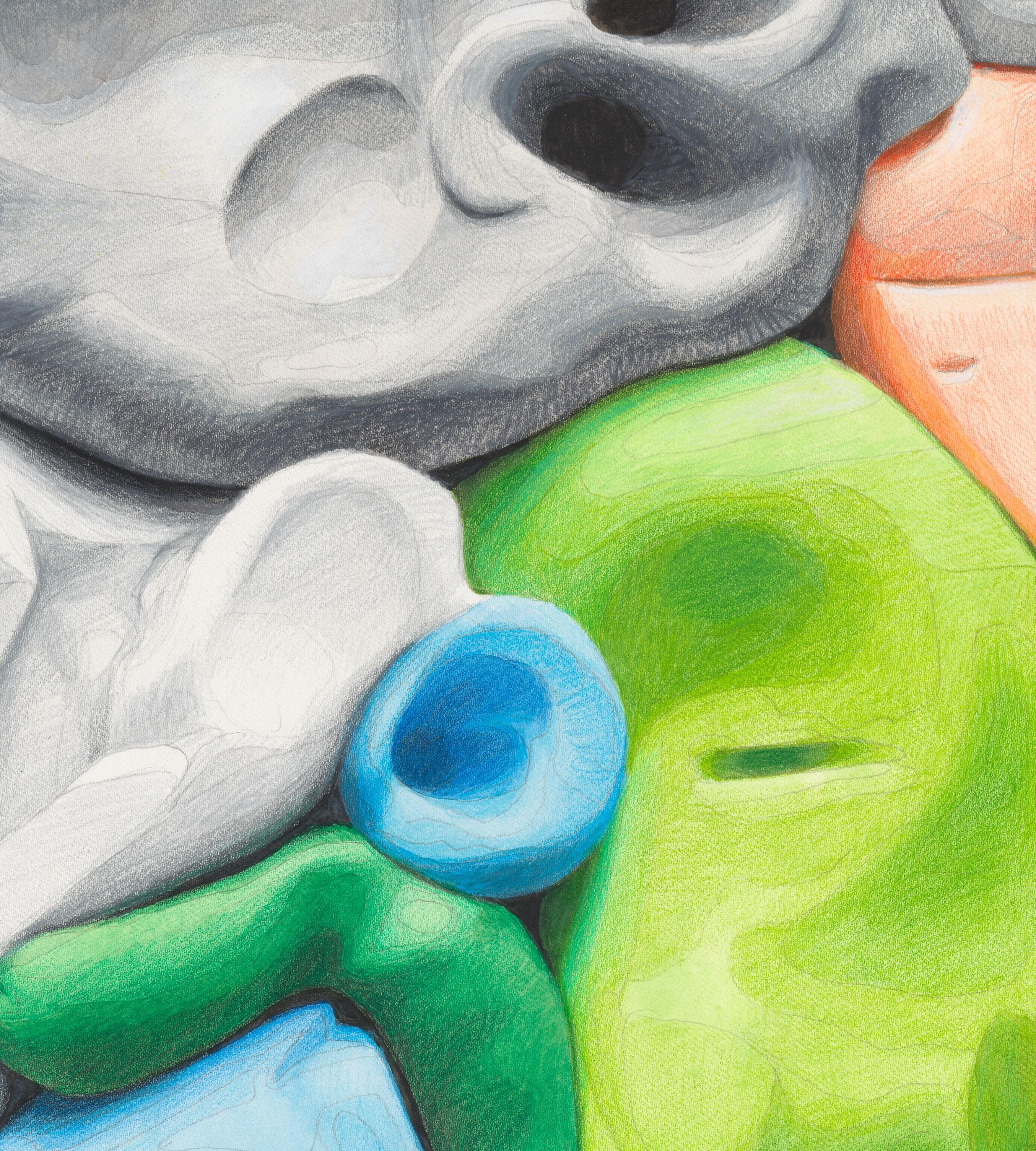 “Ross’s amalgamations sit uneasily, as if they are unsure of their purpose or their viability as structures. It is unclear, for example, whether the walls’ component parts were once pliable and plastic and have since hardened into a stable configuration, or if they retain a latent elasticity—and thus the potential to be reshaped and reconfigured, reanimated, even.”