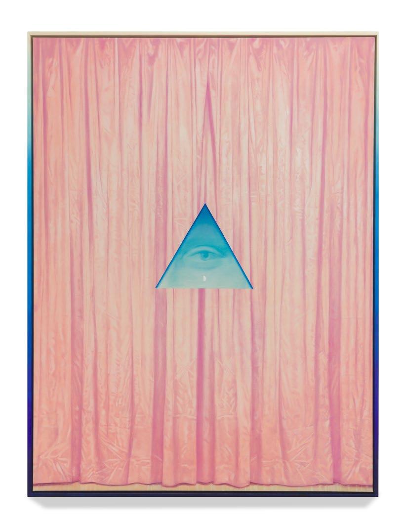 In Marionettist (2025), carmine drapes fall symmetrically along either side of the frame. They are unmistakably fabric. At the same time, given their exacting execution, they seem like simulations. From behind these curtains, those ghostly hands reemerge. Again, their pose recalls a medieval blessing, even as both the title and the composition suggest puppetry. Questions come to mind: What is being performed here? Who is pulling the strings? In place of an answer, we get a silent aria.