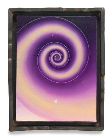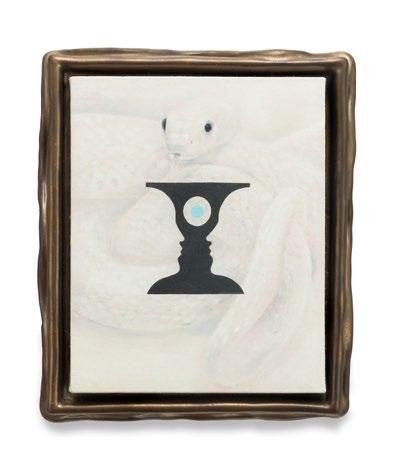 Gone is the directive to make myths. In its place, there is a rich grammar of forms—spheres, spirals, motifs cribbed from astrological and alchemical vocabularies—that seem more interested in tuning the picture’s rhythm than transmitting doctrine. In certain cases, the form recedes into an even more radical modernism. The result is a kind of proto-symbolic abstraction. Snake (2025), a near monochrome of choral pink, is a case in point.