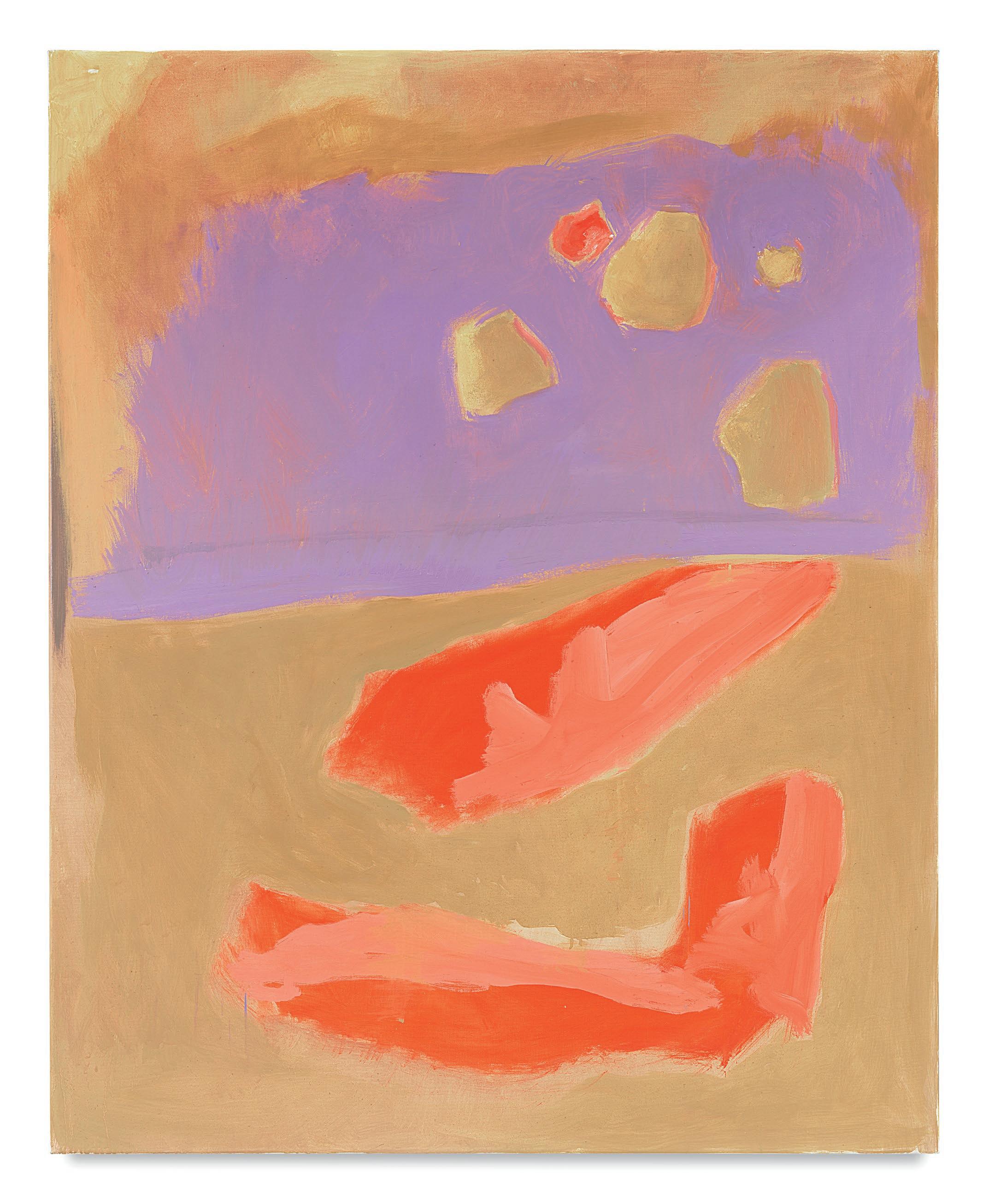 A more symbolic strain in Vicente’s work is exemplified in Untitled #15 (1997), in which the artist centers a small, central red orange “figure” with a lighter red orange “halo” over a light violet swath, which defines the horizontal orientation of the canvas. An association can be made here with J.M.W. Turner’s swirling suns burning holes in the middle of his chromatically diffuse sunsets in blinding allegories: intuitions of the waning of British imperial glory. Yet Vicente doesn’t really share such a rhetorical agenda here. His is more a ma er of an instance of natural satori, a glimpse of a particularly radiant flower, perhaps, amid a field in filtered sunlight. He famously tended an extensive garden in his Bridgehampton, New York, home and studio, so such a horticultural inspiration is more likely than not. But it’s the translation of a transformative moment of beauty into a painting that presents a challenge to any artist. Vicente achieved this with an approach to abstraction that approximates the symbolic but then recedes back into a luxury of phenomenal plenitude, the kind of complex-yet-direct sensory pleasure one derives from an Odilon Redon symbolist pastel, for instance.