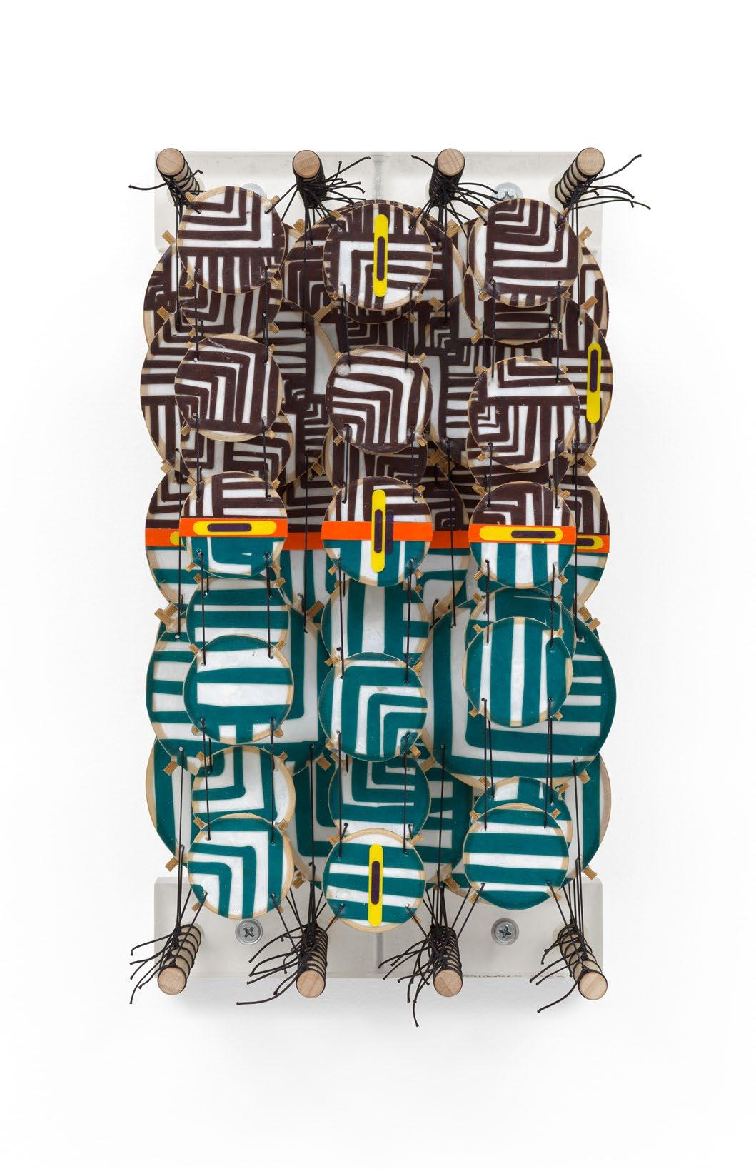 Acrylic, bamboo, paper, wood, and Dacron