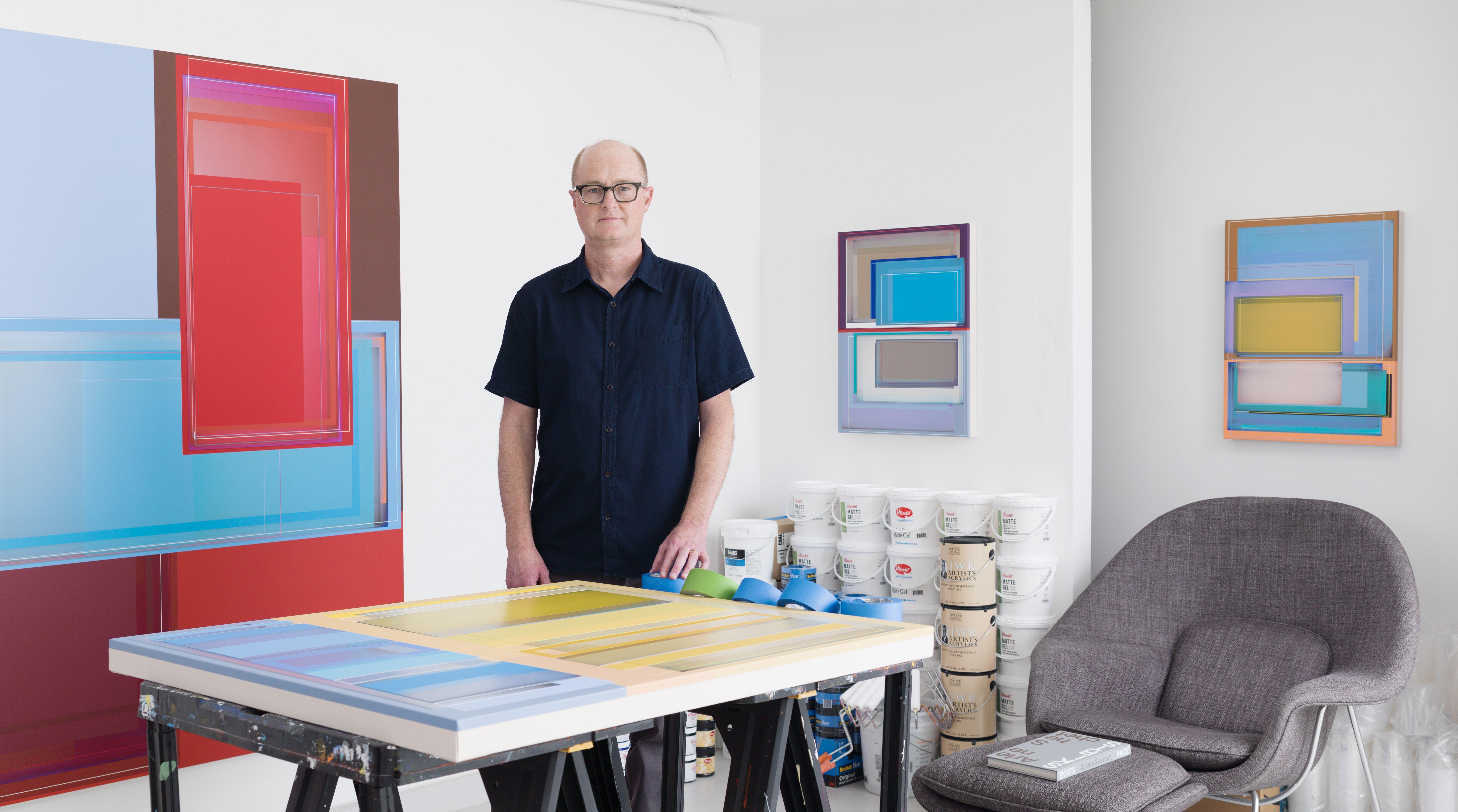 “The sensuality of the surfaces of Wilson’s paintings is spectacular: so sumptuous and aglow with so much to savor that it’s clear that each painting is occupying the here-andnow as if it were the only moment that mattered, and that you, the viewer, are the center of the universe. There is not a smidgen of withholding. There’s discipline, to be sure, but with Wilson’s paintings it’s pretty clear that rigors and regimens have far more to do with his relationship to his art than with what his works expect from us. It’s obvious that Wilson goes to great lengths to get every detail so close to perfect that you’d need a magnifying glass and a laser level to detect any variations in his razor-sharp edges, crisp contours, and perfectly smooth planes.”