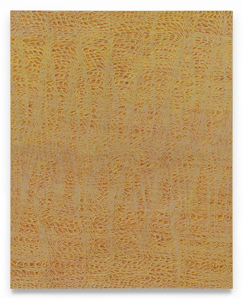 The yellow and orange windswept movement in Phenotasp (2024) whispers as it whirls, entangled in loops and updrafts. In its arhythmic scatter, it is very like the studied carelessness of style known as sprezzatura. Nonetheless, Phenotasp is never without purpose, never truly random, no matter the weather. Siena relishes the way his devotion to process can deliver the unforeseen happy retinal accident. Constraints, executed with verve and curiosity, contribute to the membrane and tissue of the work.