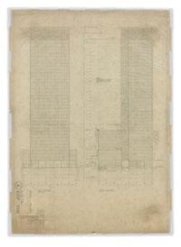 Ludwig Mies van der Rohe with Philip Johnson, Kahn & Jacobs, Seagram Building, New York City, New York, (North and west elevations), 1957, Graphite on ozalid, 52 x 37 1/4 inches (132.1 cm x 94.6). The Museum of Modern Art, New York, NY, Mies van der Rohe Archive, Gift of the architect.