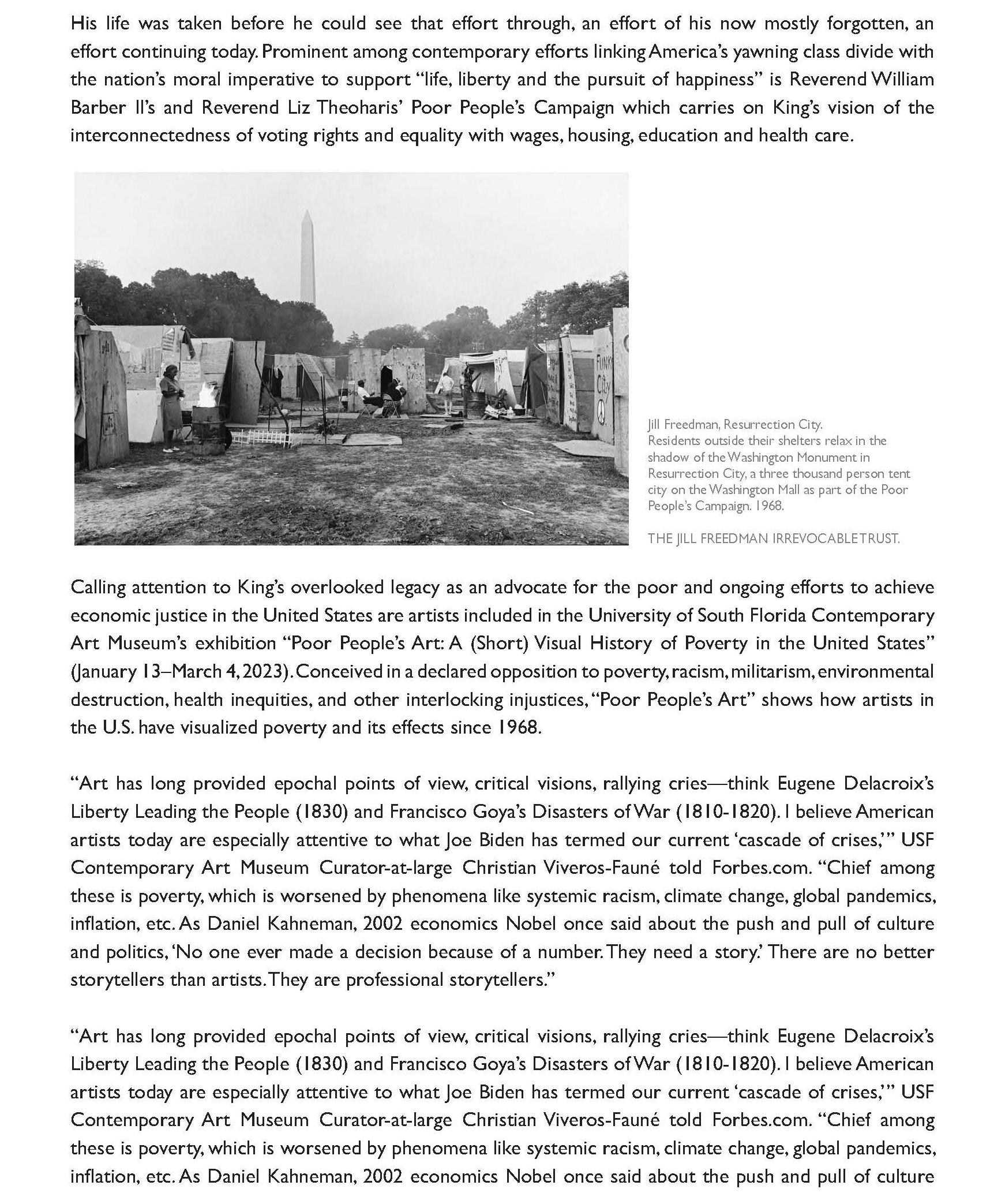 “Poor People’s Art: A (Short) Visual History of Poverty in the United States,” USF Contemporary Art Museum,Tampa, FL